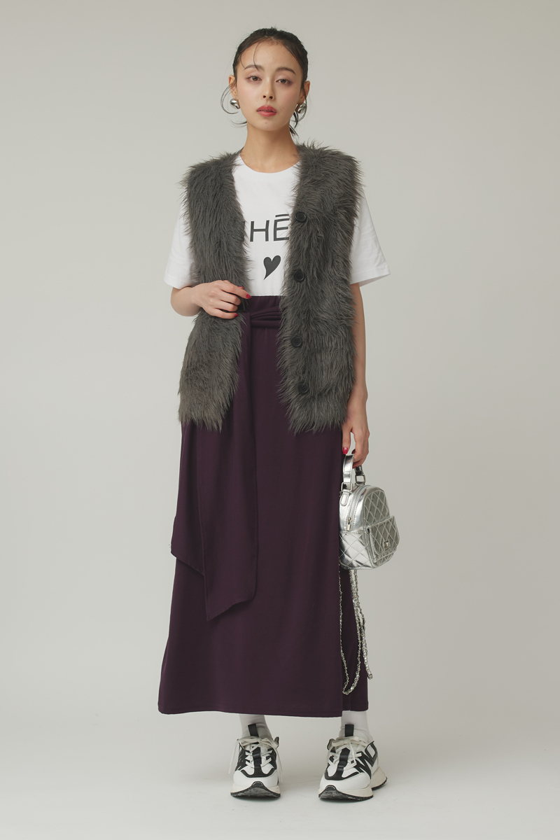 ロゴTシャツにシャギーベストを重ねた、抜け感のあるカジュアルモードスタイル。 毛足のある素材がラフなアイテムに表情を加え、程よくエッジの効いた印象に仕上げます。 ボトムには深みのあるカラーを合わせることで、カジュアルになりすぎず、大人らしいバランスを演出。