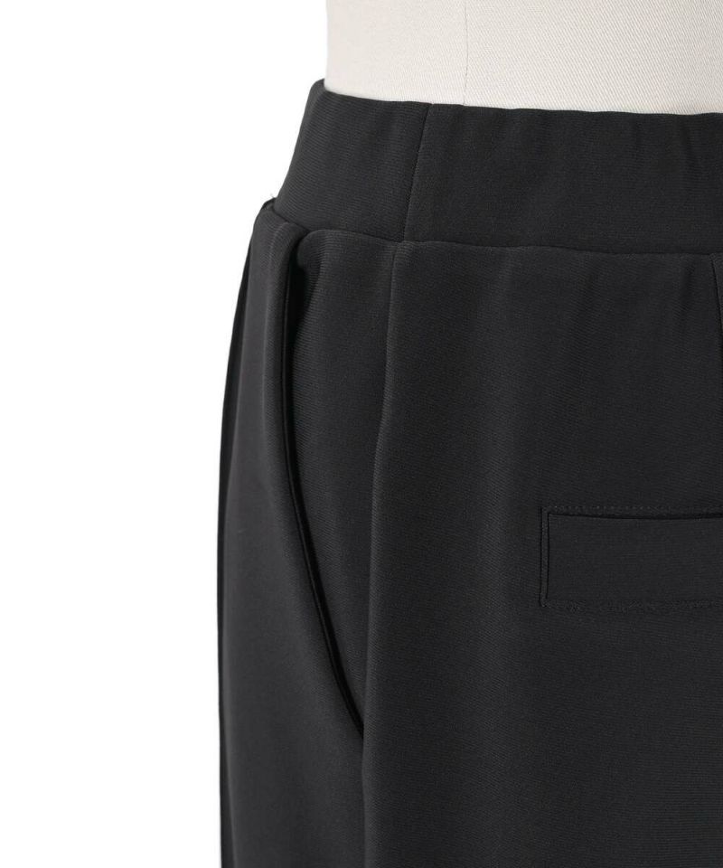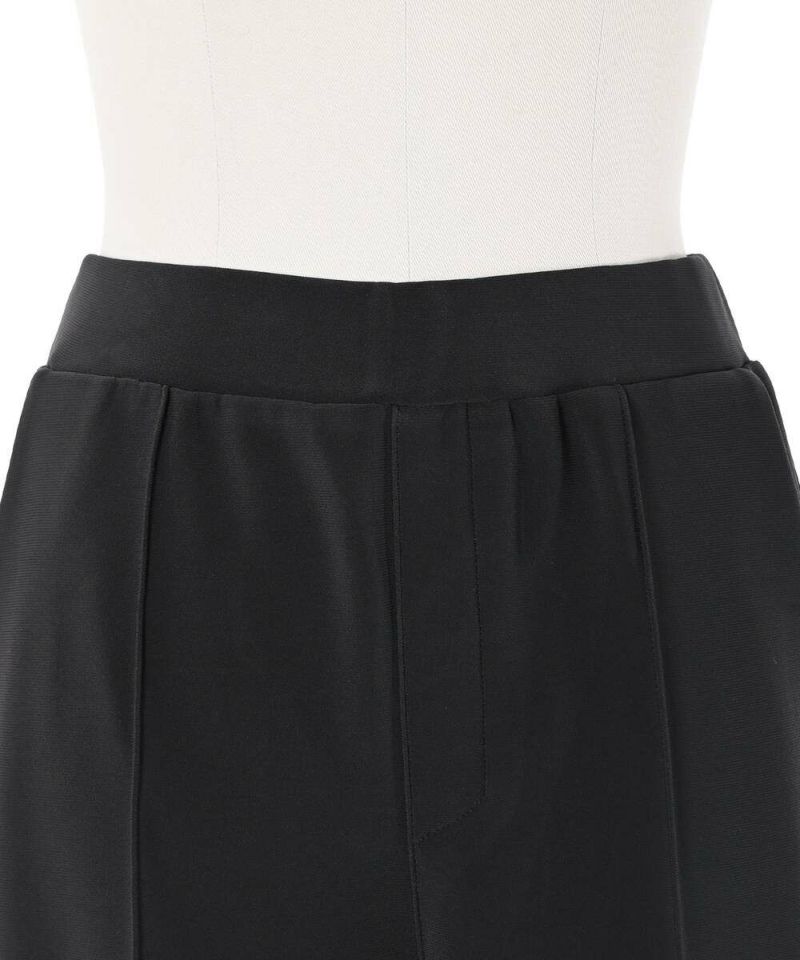 前後にセンタープレスが入っていることで脚が立体的に見え、スタイルアップ効果のあるテーパードパンツ。ストレスフリーに着用できるようウエスト部分にゴムを使用。肌寒い季節に嬉しい裏起毛を採用してます。