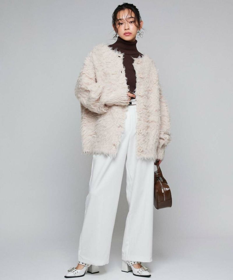 毎シーズン大人気のシャギーカーディガンが今季は淡いカラー4色展開で登場。シャギー素材を使用していることで、ふんわりとした手触りが女性らしさをプラス。ゆったりとしたシルエットが、トレンドを抑えながらもインナーを選ばずに着用できます。1枚持っているだけで、コーディネートの幅が広がるアイテム。