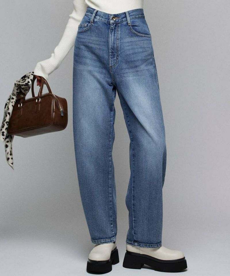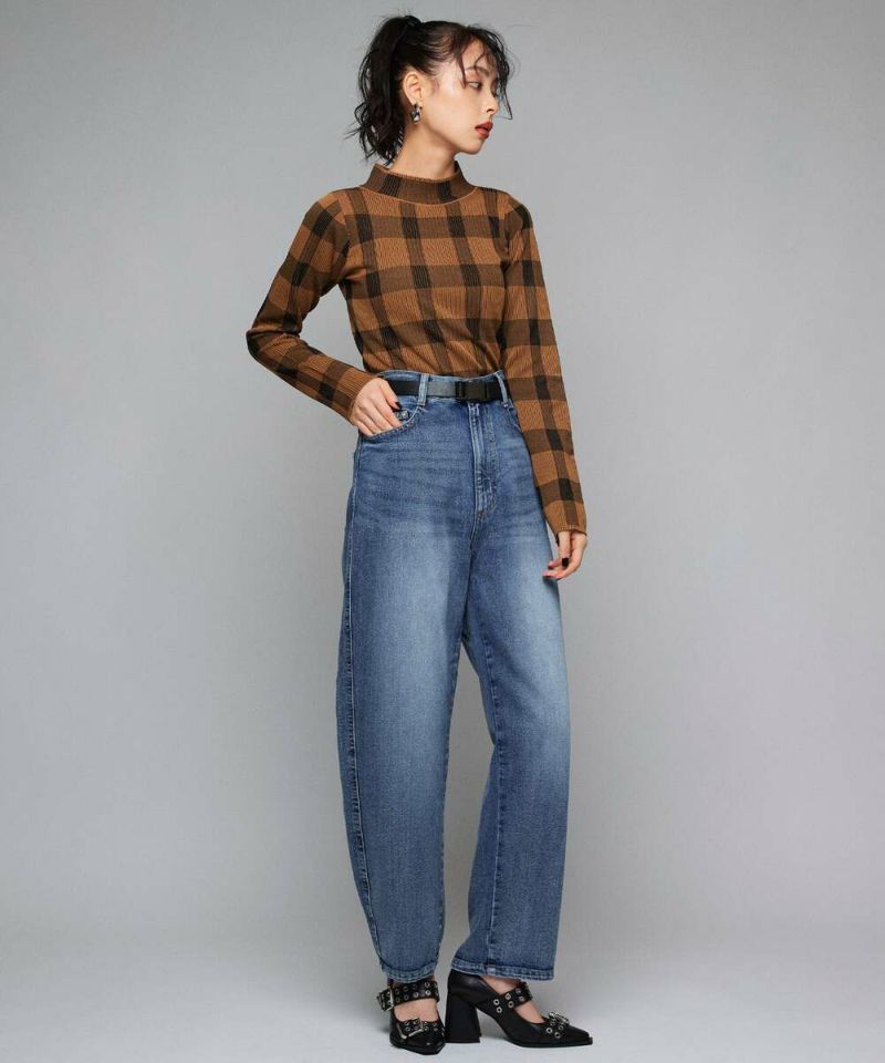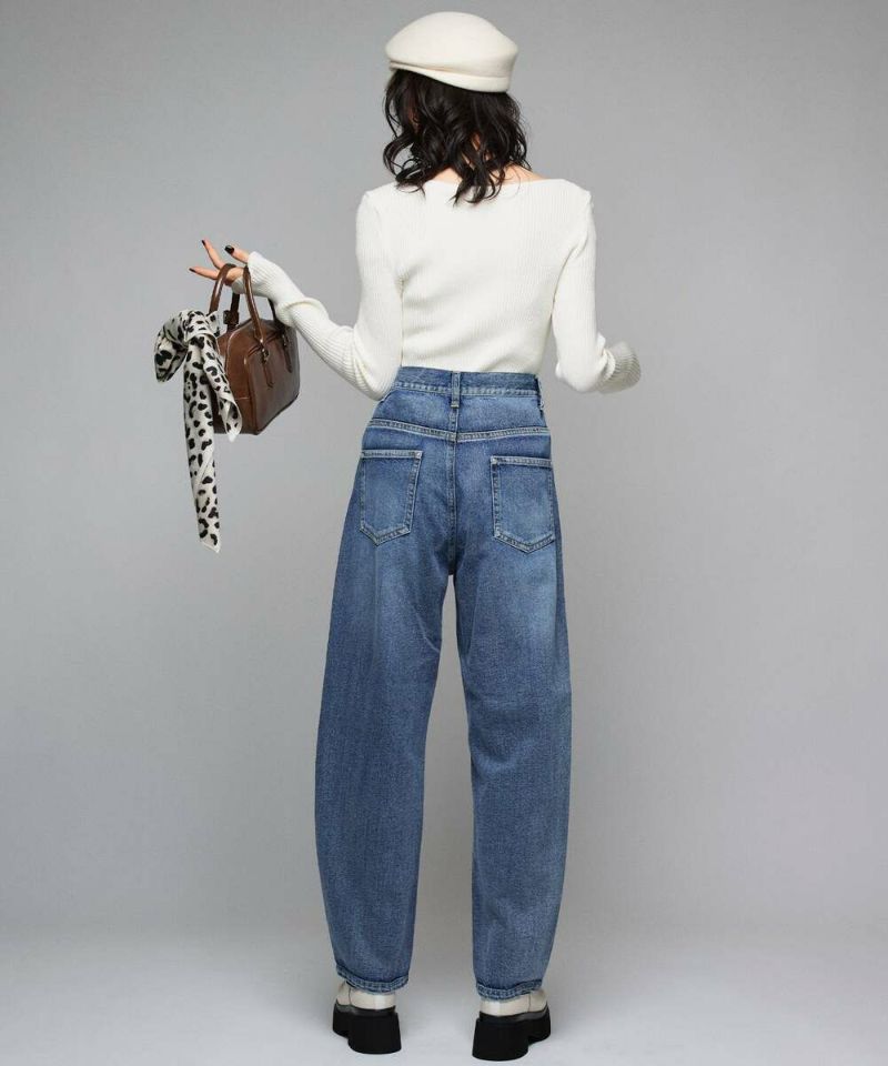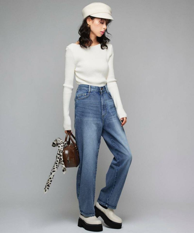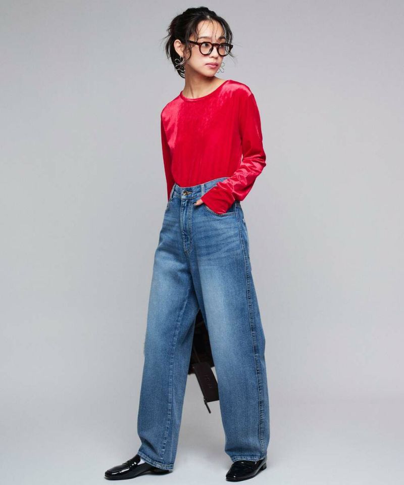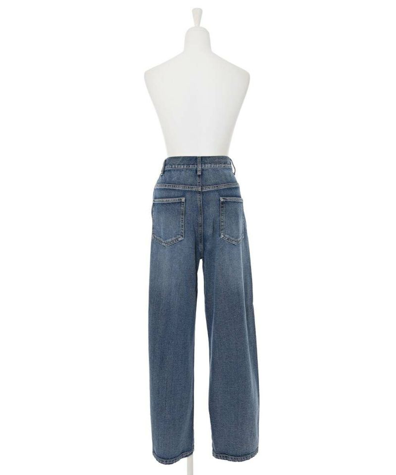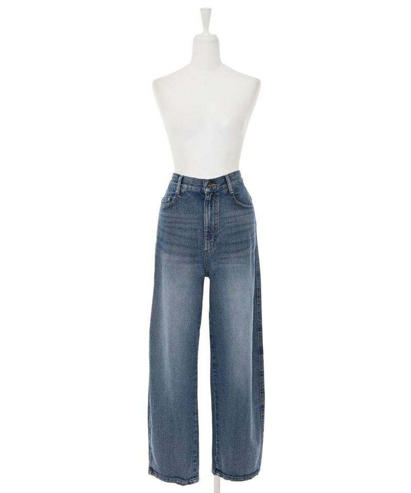 立体的なカーブシルエットで、旬のレッグラインを描くデニムパンツ。程よいハイウエストデザインで腰周りはすっきりと仕上げ、ワイドなシルエットながらも美脚見えするアイテム。ウエストは内側にリボン付きで調節可能。スタイリングの幅を広げてくれ着回し力抜群◎【model】:H165 B78 H83 / H160 B80 H85