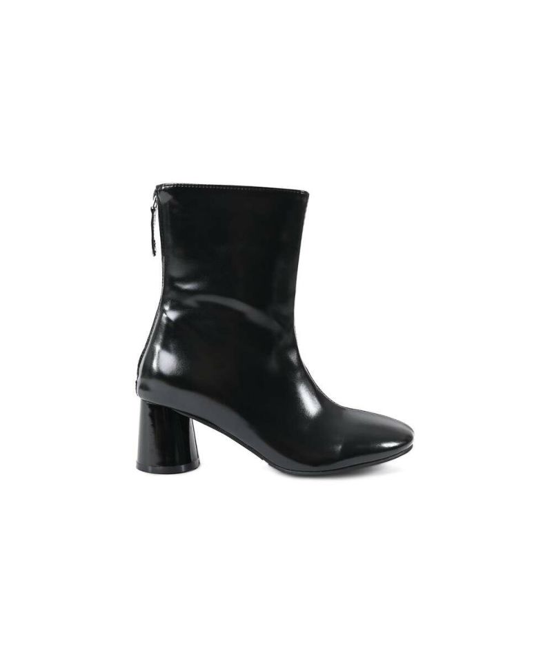 すっきりとしたトゥラインと光沢のあるエナメル素材が大人っぽい印象になるショートブーツ。どんな装いにも相性抜群で今年のマストアイテム間違いなし。