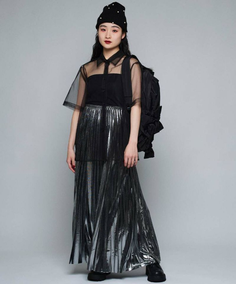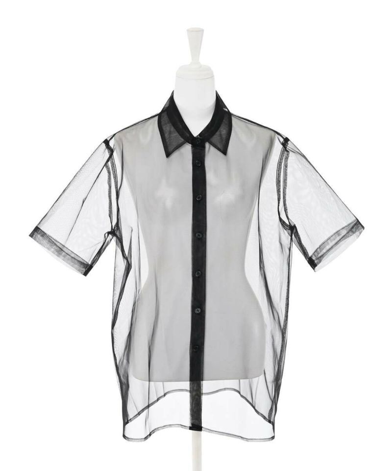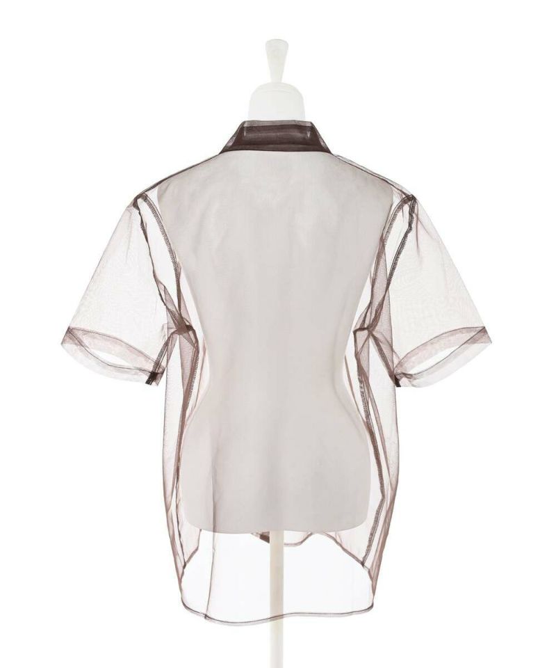 ハリのあるオーガンジー素材がセンシュアルな雰囲気で、高級感をプラスしたシャツ。トップスでも羽織りとしても活躍するアイテム。程よい透け感がレディライクな印象に。ゆとりのあるサイズ感なので、タンクからTシャツまでインナーに着用できます。【model】:H165 B78 H83 / H163 B78 H84