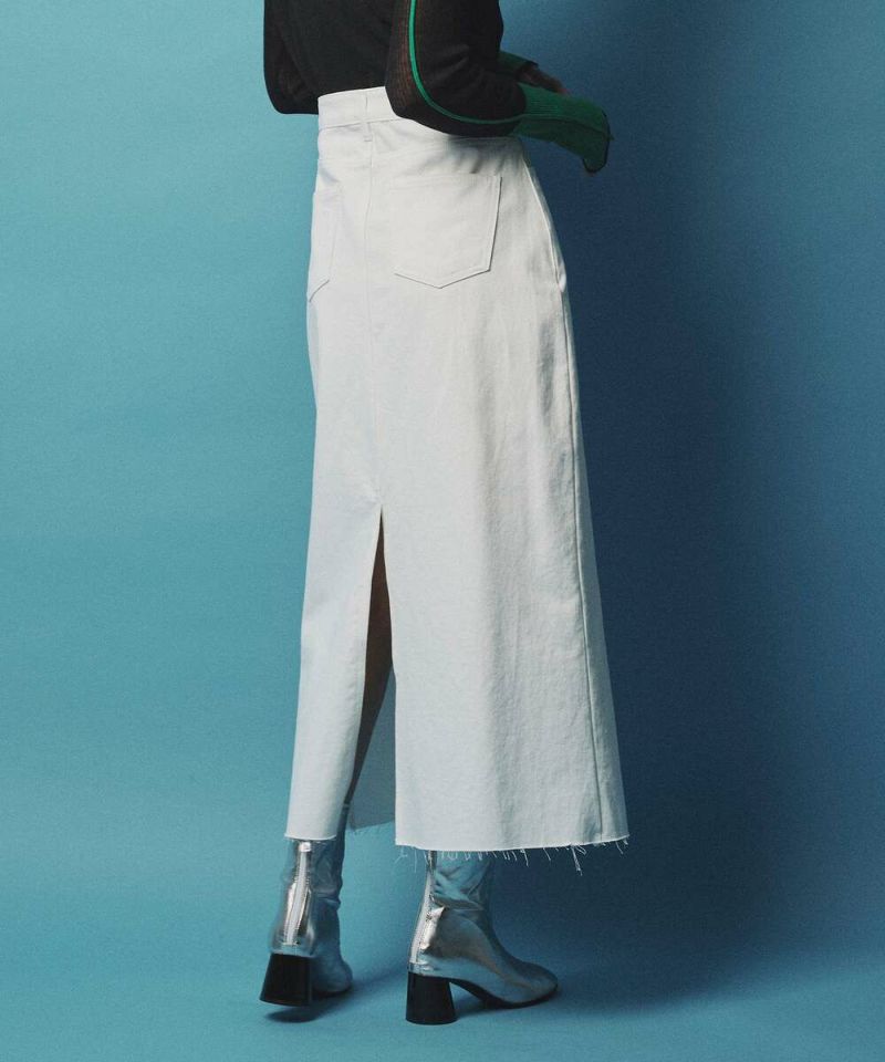 ■ POINT程よくタイトで体のラインを拾わない女性らしい絶妙なシルエット。カジュアルにもきれいめにも使えるデニムロングスカート。裾の断ち切りデザインで抜け感も演出。厚すぎない生地感でオールシーズン活躍いただけます。深すぎないバックスリットで品のある印象に。また足さばきも良く普段使いにもおすすめです。■ STYLINGトップスを替えるだけで、シーズンレスで活躍してくれるのも嬉しいポイント。トップスはインでもアウトでもバランスが取りやすく、着回し抜群。足もとは、ヒールやスニーカーなど様々なスタイルと合うので毎日のお洒落を楽しんでいただけます。モデル身長:156cm