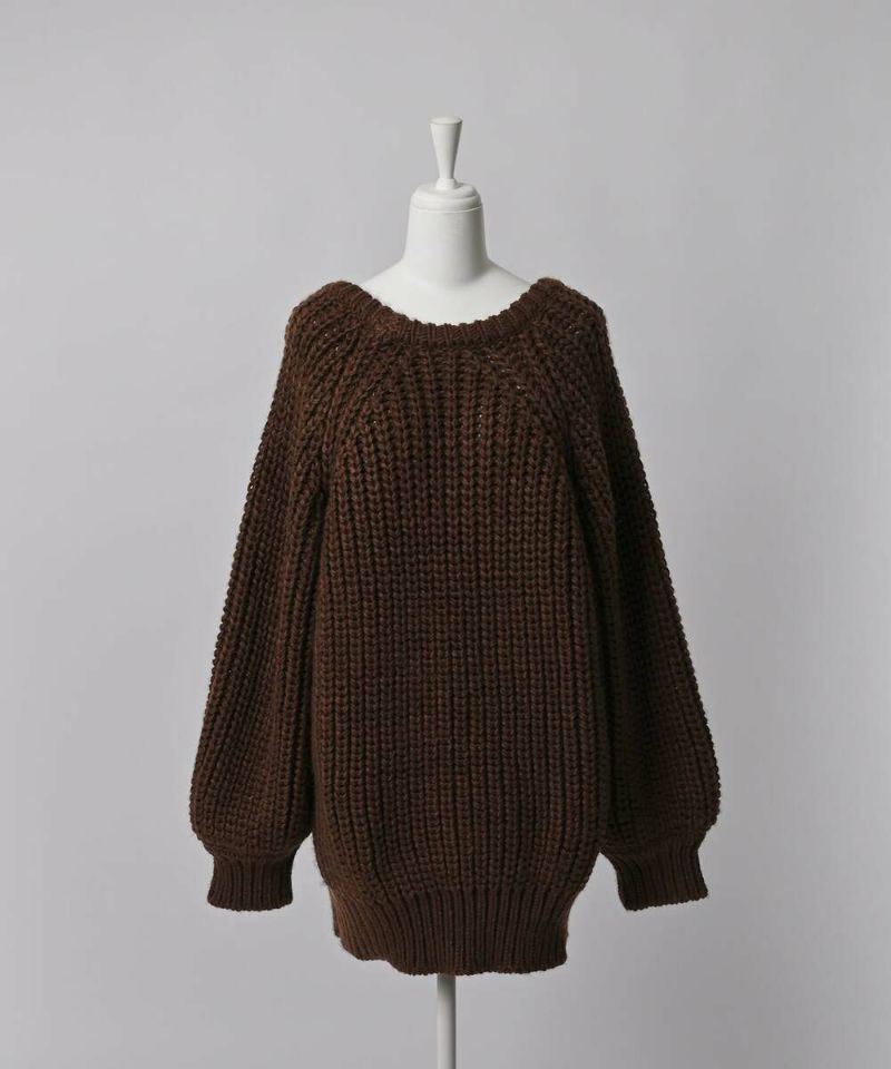 2ゲージの糸を用い、今年らしい抜け感のあるざっくりとした編地で仕上げたローゲージニット。ゆったりとしたビッグシルエットで、伸縮性のある柔らかくもちもちとしたニット生地がリラクシーに着用できます。袖にたっぷりと生地を溜めたシルエットと肩回りをスッキリと見せてくれるラグランスリーブがアクセントに。様々なアイテムとのレイヤードが楽しめるシンプルなデザインが魅力的なアイテム。【model】H160 B80 H85