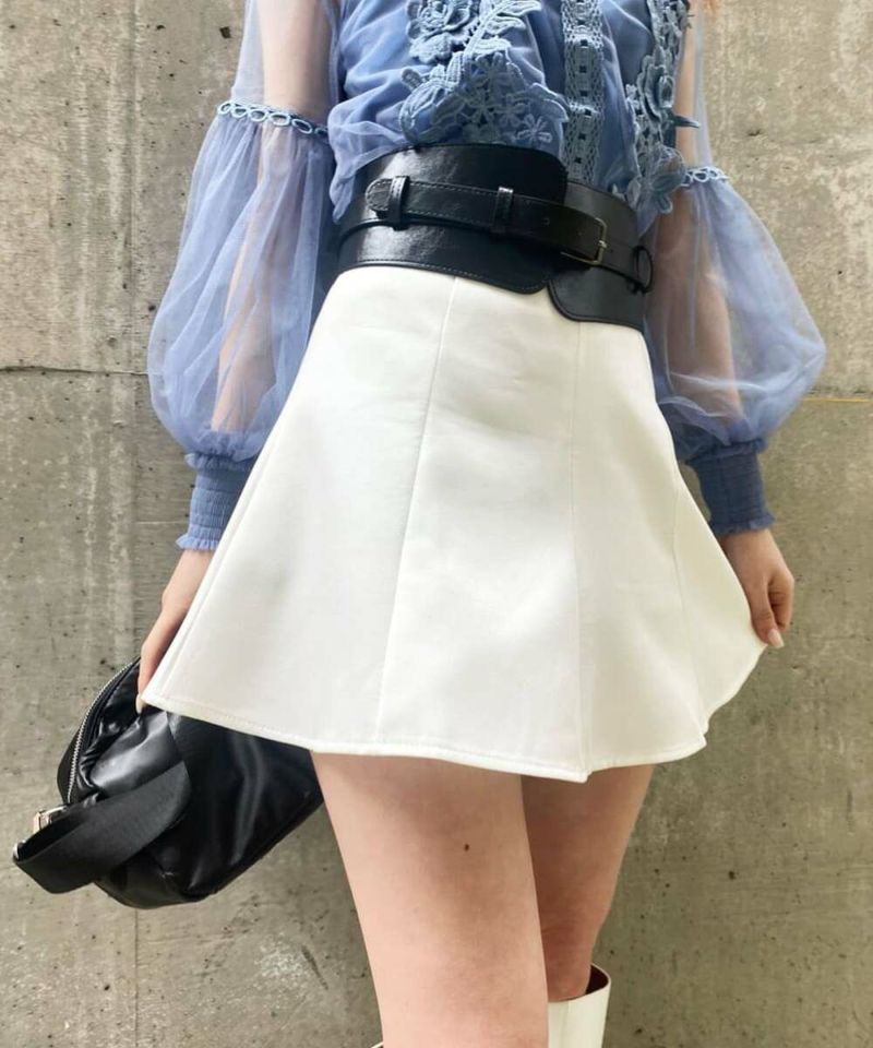 トレンドライクなミニ丈のフレアスカート。ウエストから広がるフレアラインが、脚をスッキリ見せてくれる。 ベーシックなデザインなので、コーディネートの幅が広がるアイテム。【model】H163 B78 H84/156cm/H165 B78 H83