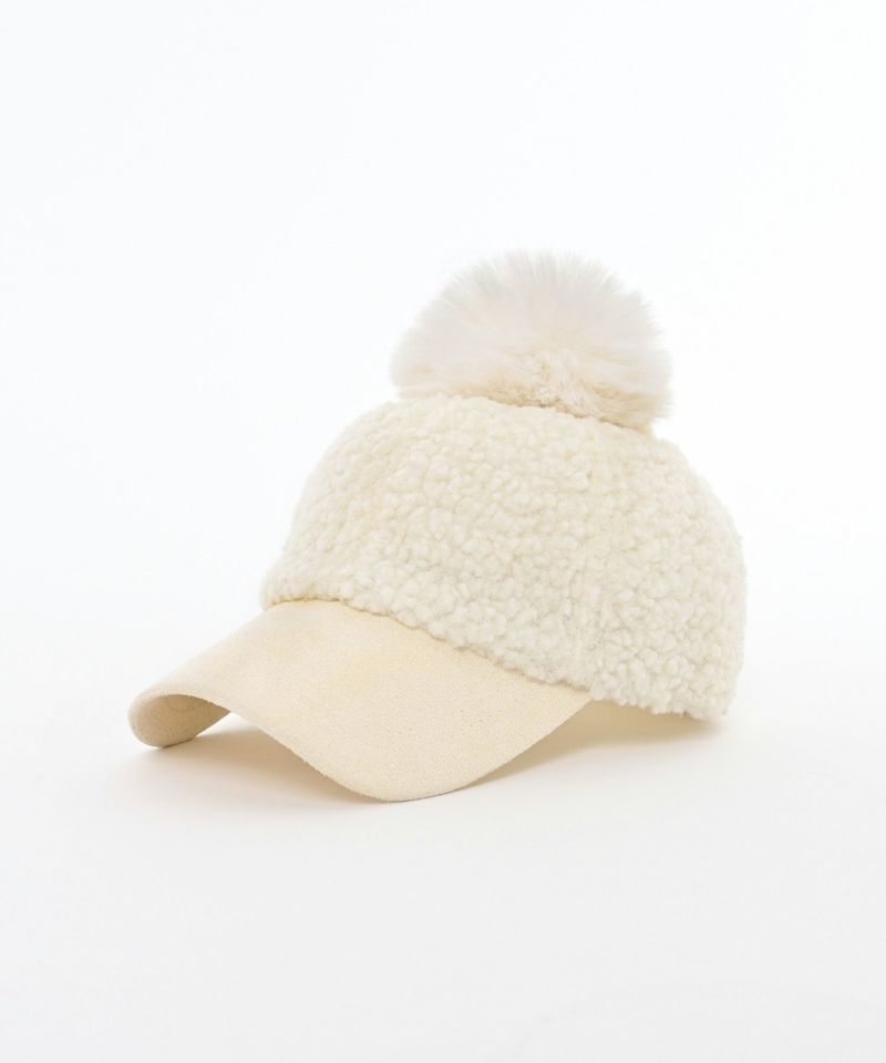 【ポイント】 もこもこのボア素材に大きなポンポンをあしらった、遊び心のあるキャップ。 可愛らしさとカジュアルさを両立し、冬のコーディネートに季節感と華やかさをプラスします。 【デザイン・シルエット】 ふんわりとしたボア素材がシーズンムードを高め、丸みのあるフォルムがやわらかな印象をプラス。甘すぎないカジュアルデザインでデイリーに取り入れやすく、後ろのアジャスターでサイズ調整も可能です。 【おすすめのスタイリング】 秋から冬にかけてどんなアイテムにも合わせやすく、カジュアルにもフェミニンにも季節のアクセントとして活躍するアイテムです。 【素材】 軽やかでふんわり柔らかなボア素材は保温性もありながらストレスフリー。ボリュームあるファーが女性らしさを引き立てます。