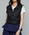 ネックジップがスタイリッシュな印象のトップス。首元のジップは開閉可能で、開けていただくと顔周りがすっきりし、閉じていただくとモードな印象でその日の気分でスタイルを変えていただけます。裾にドローコードがついてるため締めていただくとスタイルアップにも。軽量でモード感満載のつるっとした光沢のある素材を採用。秋口にはインナーにロングTシャツやシアートップスなどをレイヤードしたり、上からジャケット等を羽織るのも◎【model】H165 B78 H83