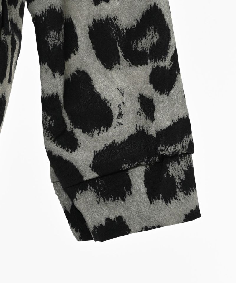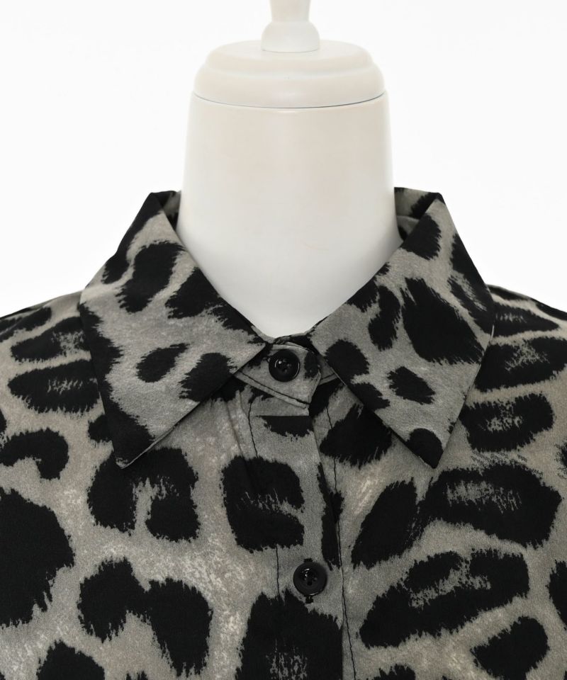 全体的にレオパード柄を施すも、モノトーンよりの落ち着いたカラーにすることで派手になりすぎず、大人っぽく着こなせるアイテム。シャツ自体はゆったりとしたシルエットを採用しており、大人っぽさを演出しつつ、抜け感をプラスします。また、一枚で存在感が出るだけでなく、インナーや羽織としても活躍します。