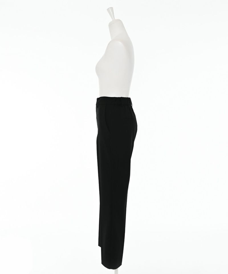 【ポイント】 美しいストレートシルエットが特徴的なパンツ。脚のラインをまっすぐに見せる事で、スタイルアップ効果が期待できます。ハイウエストのデザインは、トップスをインした際にウエストをすっきりと見せる効果も。 【デザイン・シルエット】 ウエストから裾まで美しく落ちるIラインシルエットが、洗練された印象を与える一本。センタープレスを施すことで、スタイルアップを実現。シンプルでありながらも計算されたデザインで、着るだけでスタイルを格上げします。 【おすすめのスタイリング】 Tシャツや厚手のニットでカジュアルスタイルから、ブラウスやカットソーを合わせてきれいめスタイルまでどんなトップスとも相性が良く、ジャケットやシャツと合わせてオフィスシーンまで、幅広いスタイリングが楽しめます。 【素材】 さらっと肌馴染みの良い素材。重ね着をしてももたつかず、すっきりとした着こなしが楽しめます。【model】H165 B78 H83