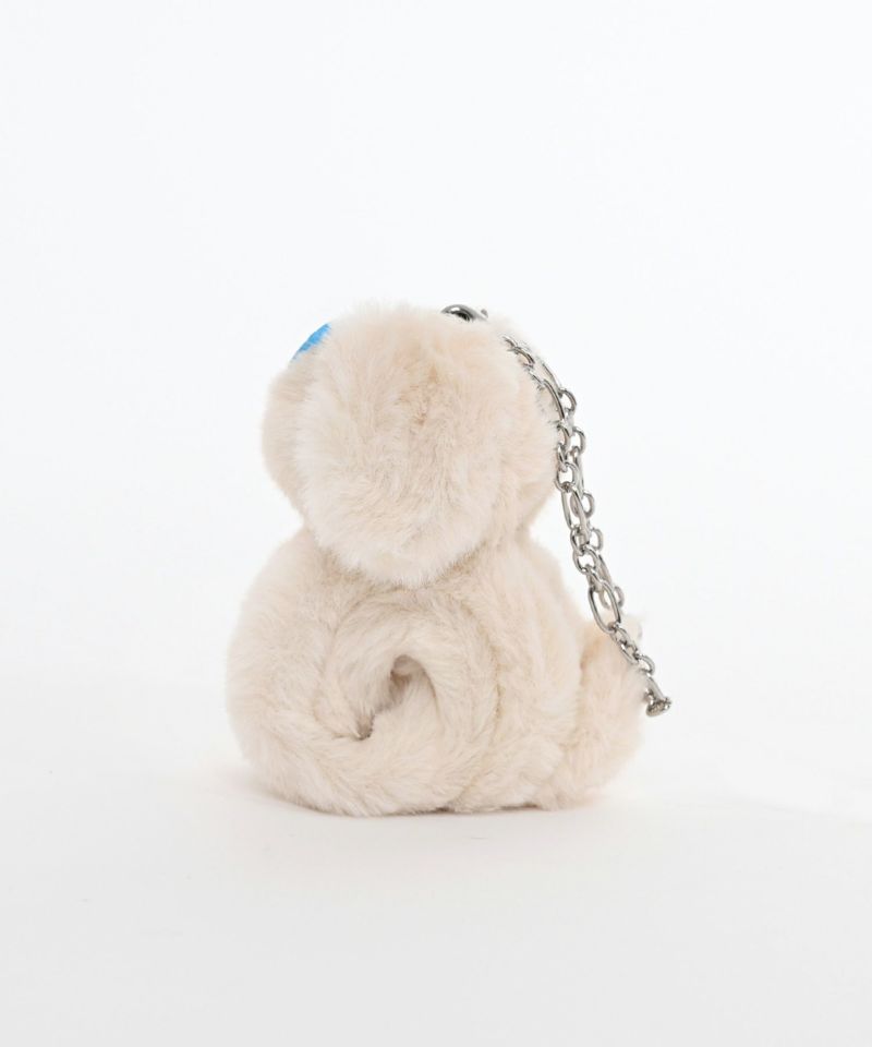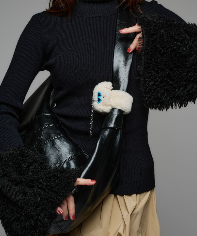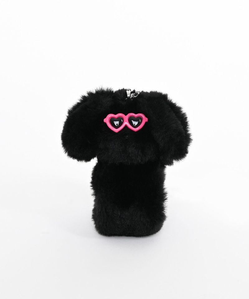 ふんわりとした柔らかな素材が魅力の、手触りの良い素材。プラスチック素材のサングラスとファー素材のドッグモチーフのコントラストが可愛らしさと遊び心を両立。シンプルなバッグのプラスワンアイテムとして活躍します。