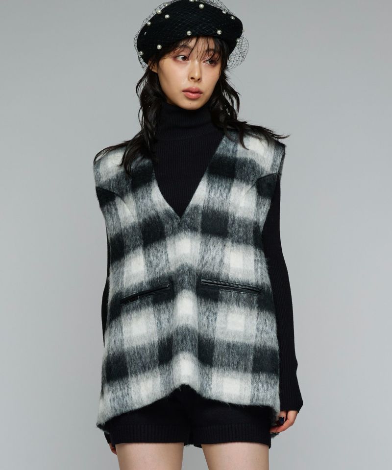 秋冬に大活躍するシャギーベスト。大胆なチェック柄がスタイルにエッジを効かせ、レイヤード次第でシックにもストリートにも映えます。