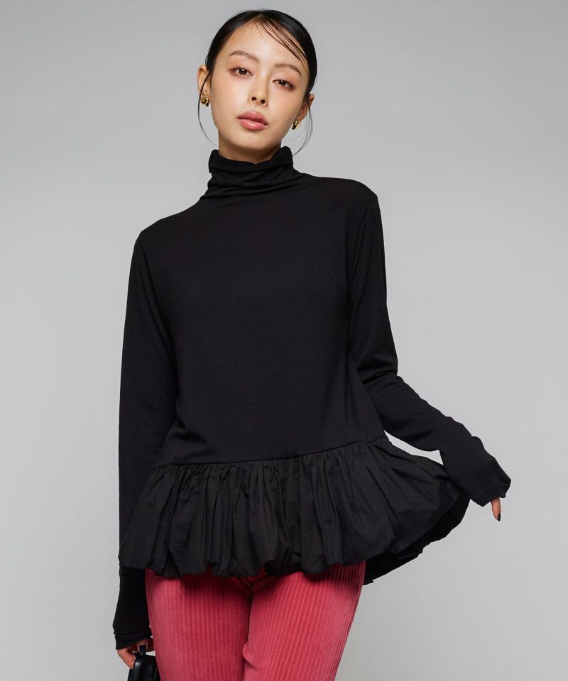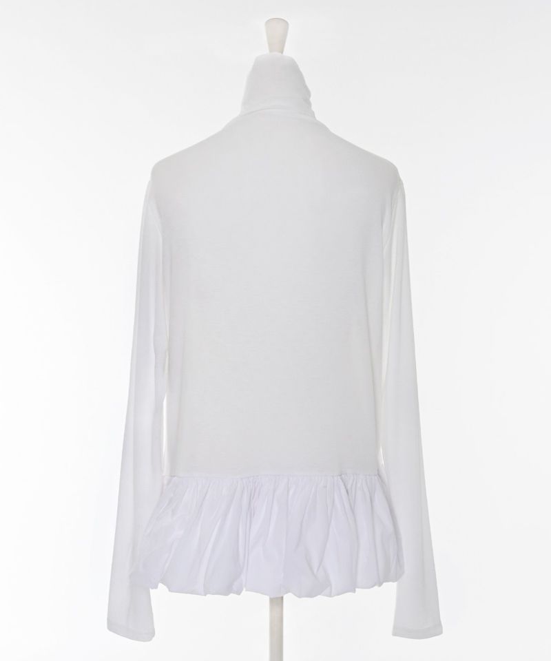 裾のバルーンシルエットがふんわりとした立体感を出し、コーディネートに華やかさをプラス。なめらかな生地感もポイントで、レイヤードスタイルのインナーとしても着用できる一枚。シンプルカラーで着回ししやすく、一枚でもしっかりと存在感が溢れる万能アイテムです。