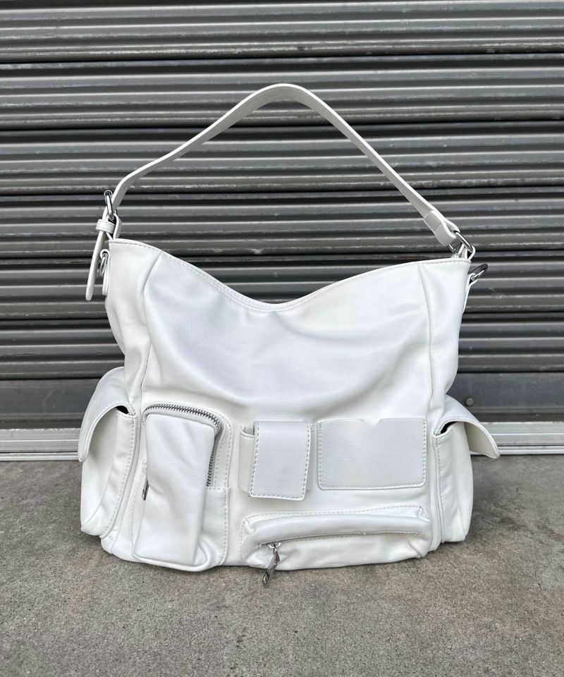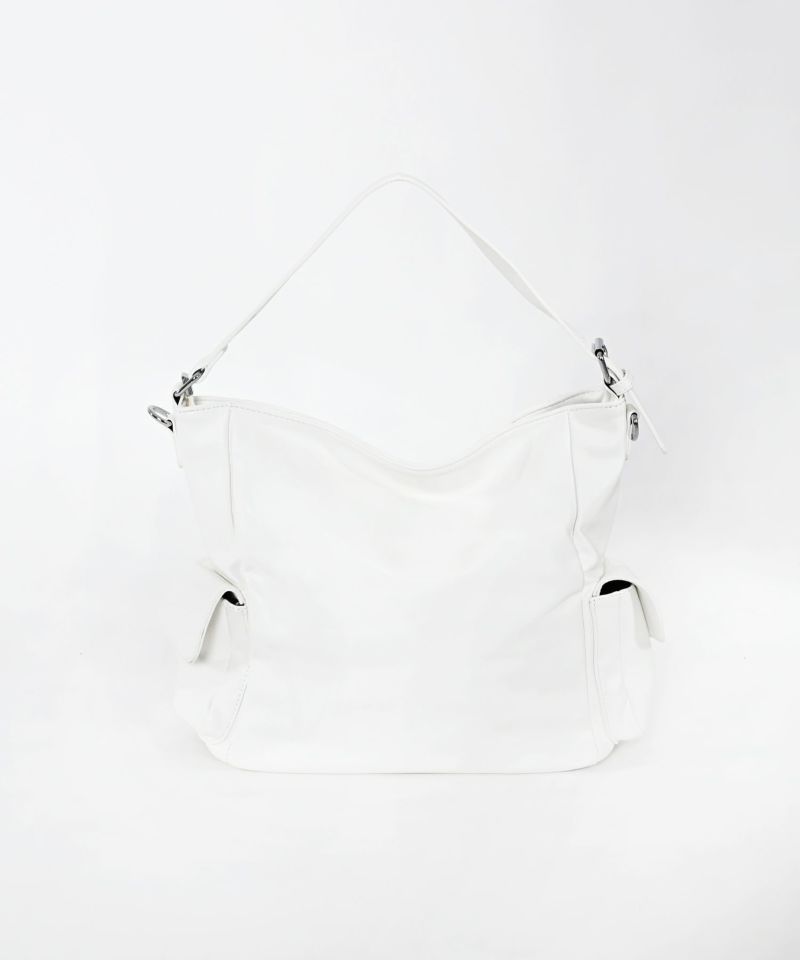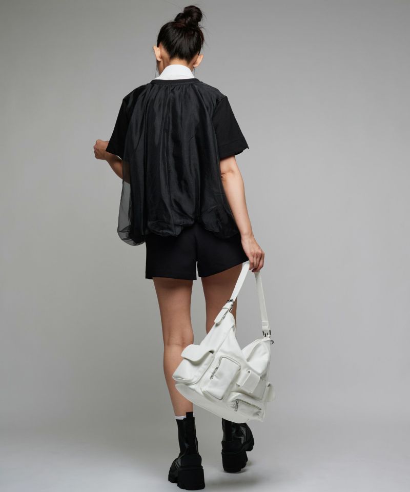 フロント部分にサイズ違いのポケット4つ(小物・ペンケース・イヤフォン・カード入れ)とサイドポケットが2つ。内側にもポケットが付属されているコンパクトながら大容量バッグ。ショルダー部分が2WAYで用意されているので、スタイリングに合わせて変えていただけるため、普段のお出かけから1泊程度の旅行にも、1つ持っておくと重宝するアイテム。