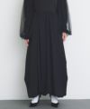 生地を贅沢に使用した裾にたまるバルーンシルエットが魅力。重さのある素材で広がりすぎず、甘さ控えめの、大人のモード感漂う上品な一着。