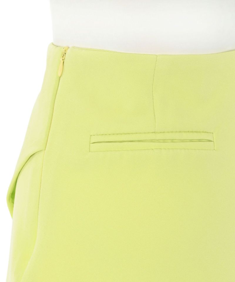 フロントがアシメデザインになったショートパンツ。ラップスカートに見えるデザインと程よくAラインのシルエットが脚長効果抜群。シンプルなトップス合わせでも一癖あるコーディネートに。【model】H165 B78 H83 / H160 B80 H85