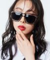 大きめのクリアレンズに、ブラックラインを二重で取り入れた個性的なサングラス。