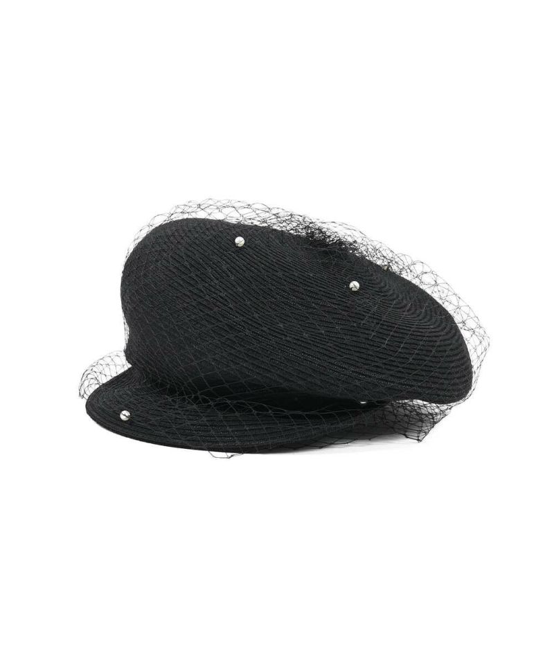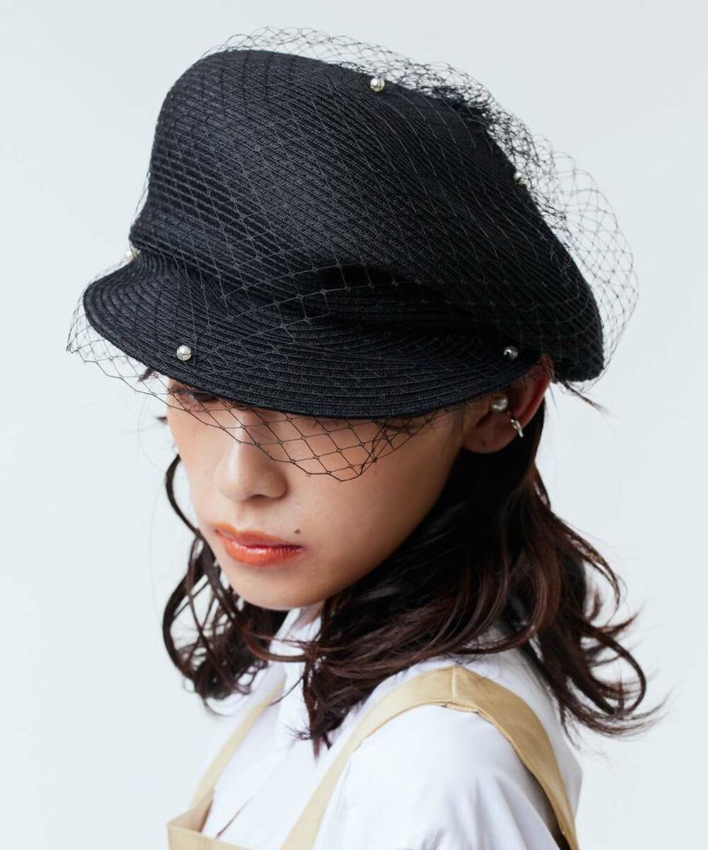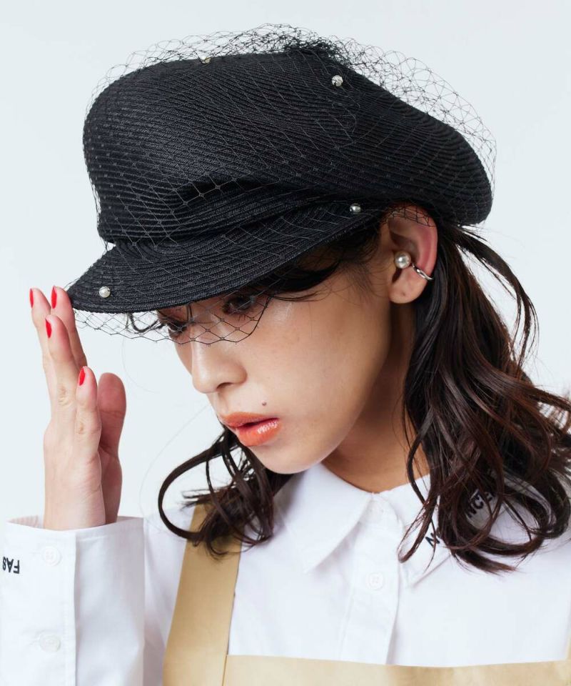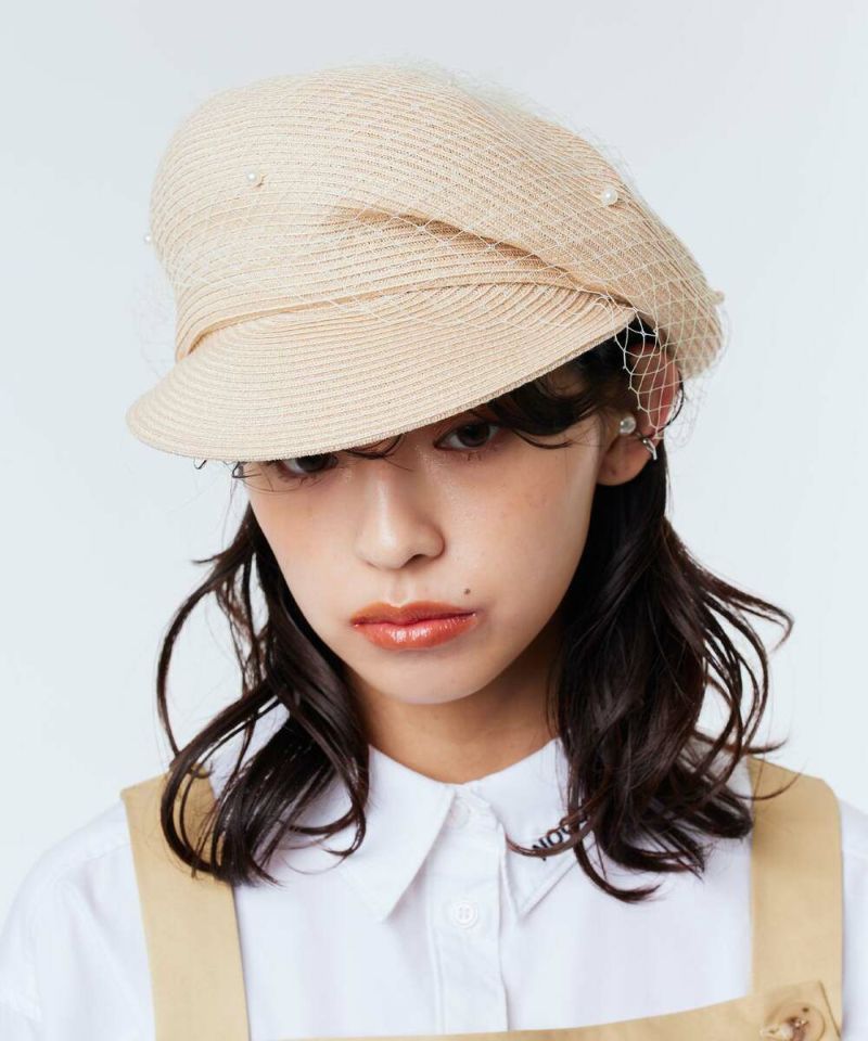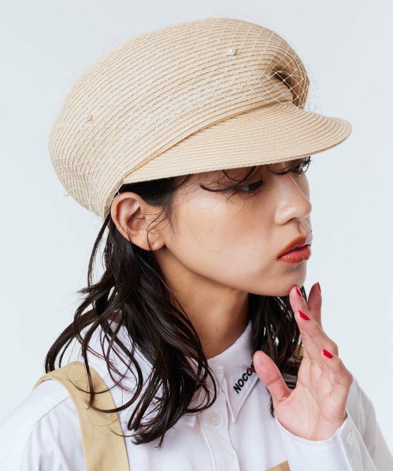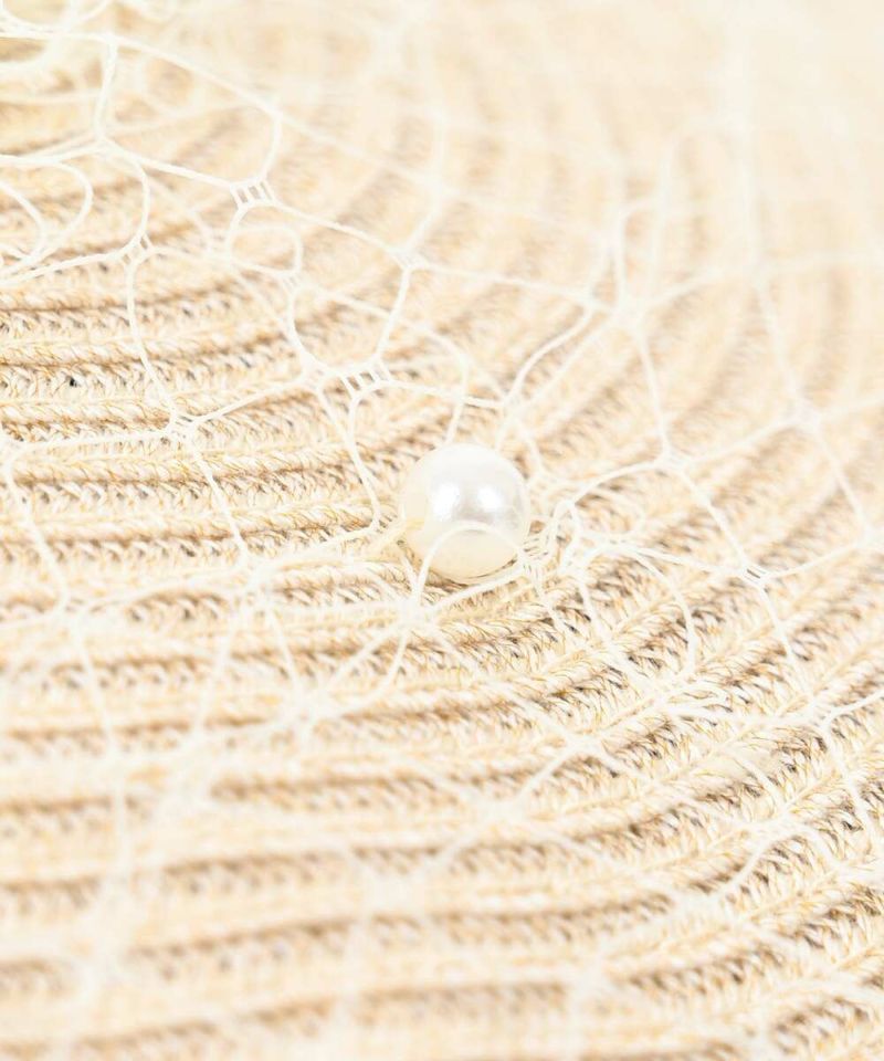 麻とポリエステルのサラッとした質感がシーズンムード高まるキャスケット。ザックリしたチュールにパールをあしらったデザインは、コーデに馴染みながらも存在感を放つ女心をくすぐるアイテム。
