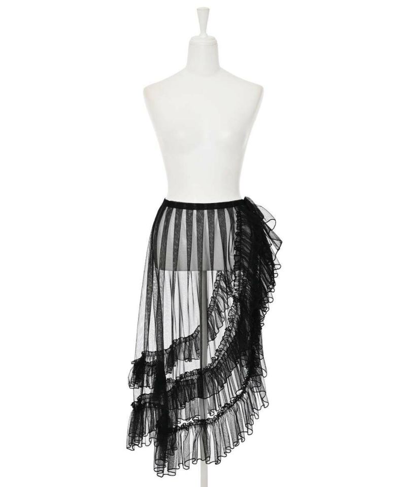 今季トレンドのレイヤードスタイルが完成するラップスタイルのチュールスカート。フロントやサイドなど結ぶ位置を変えるだけで印象が変わるのも嬉しいポイント。肩からかけてポンチョ風にも。【model】H160 B80 H85