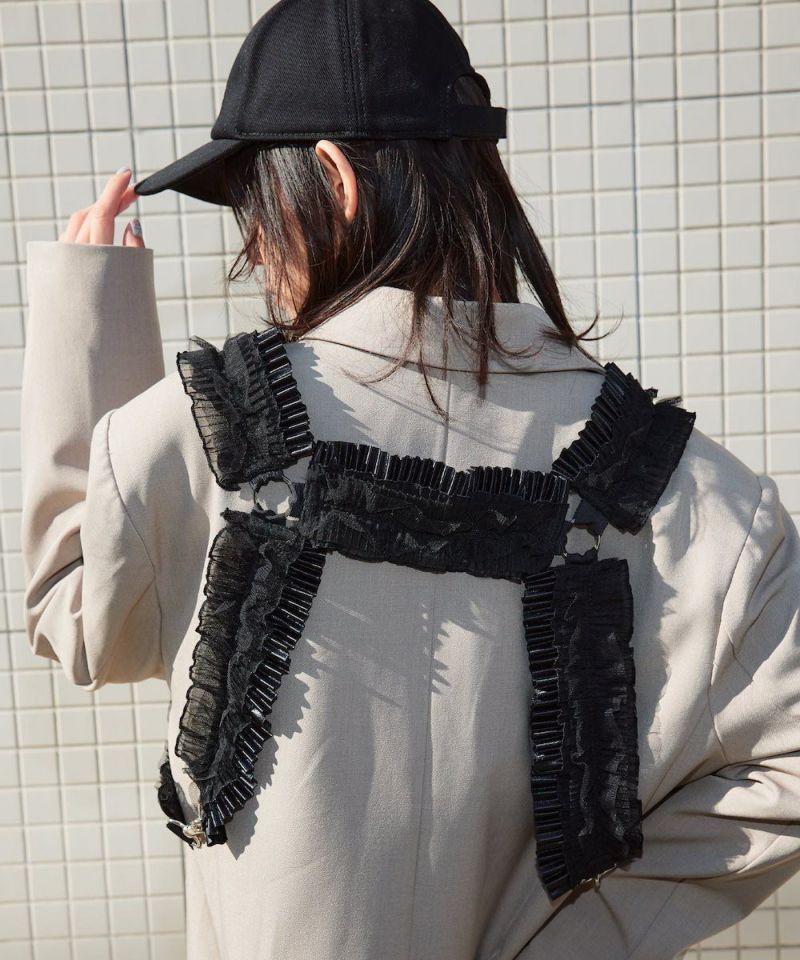 - Buyer design collection -『リアルに着たいMODE STYLE』をコンセプトに、バイヤーがデザインやシルエットに拘って企画したアイテム。大好評いただいたハーネスがSSデザインで登場。プリーツ加工を採用しボリュームをコンパクトに抑えたことでモードな印象かつ、レイヤードしやすいデザインに仕上げました。春先はスウェットやブラウス、夏はTシャツやノースリなどと相性◎脇下のナスカンを留めるだけなので着脱しやすく、オールシーズン活躍できるのでアクセサリー感覚で普段のスタイリングに取り入れてもらいたい一点です。【モデル】:H165 B78 H83 / H163 B78 H84
