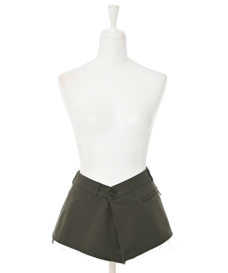 普段のスタイリングにレイヤードするだけで、お洒落上級者になれるプラスワンアイテム。ウエストは3段階で調節できるボタン付きで、実用性のある3つのポケットデザインがポイント。同素材のツイルワイドパンツとセットで着用するのもオススメ。【モデル】:H165 B78 H83 / H163 B78 H84