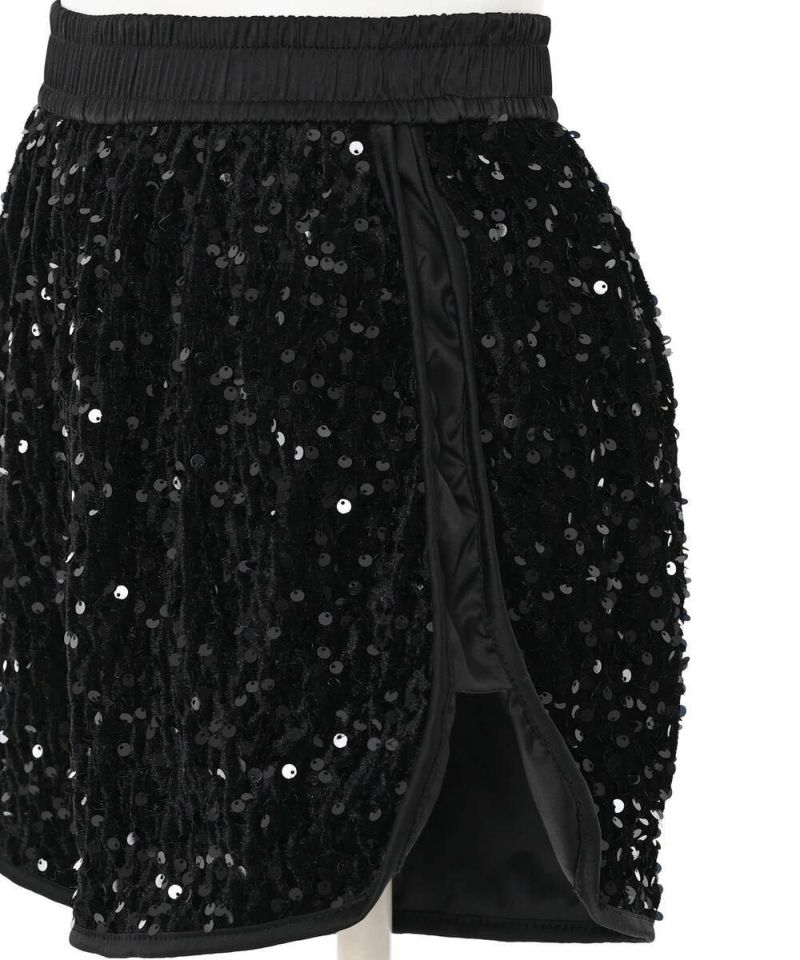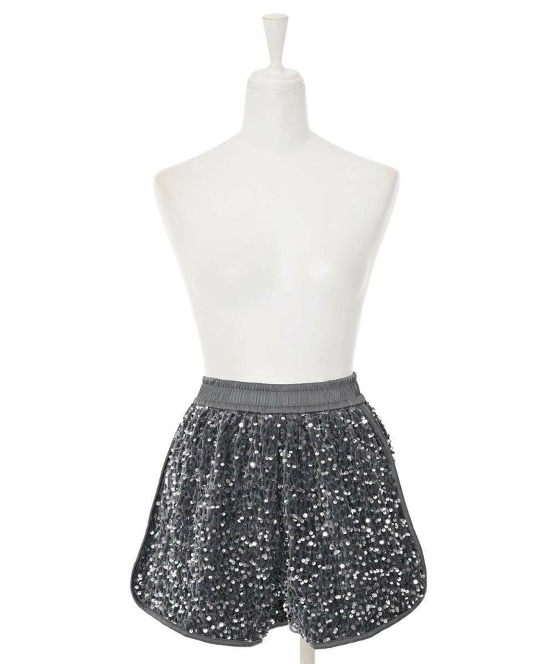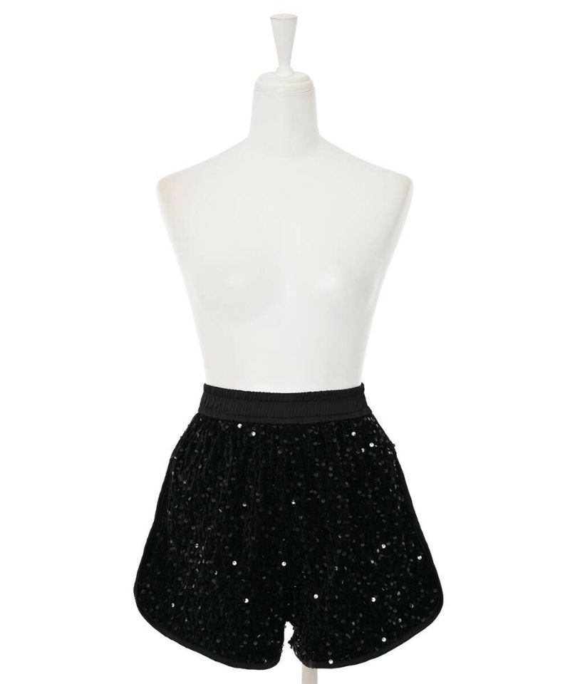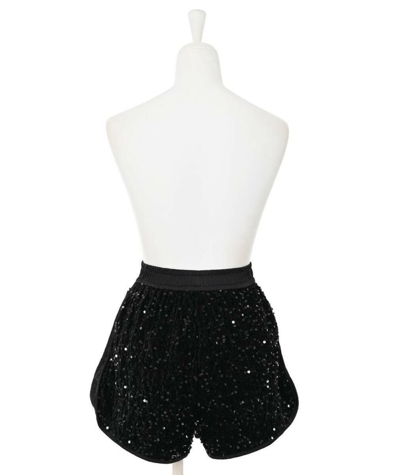 存在感のあるスパンコール素材を、スポーティムードなキックパンツデザインに落とし込んだトレンド感たっぷりのアイテム。ウエストゴムで、ストレスフリーに着用できるサイズ感も嬉しいポイント。【model】H165 B78 H83/H163 B78 H84