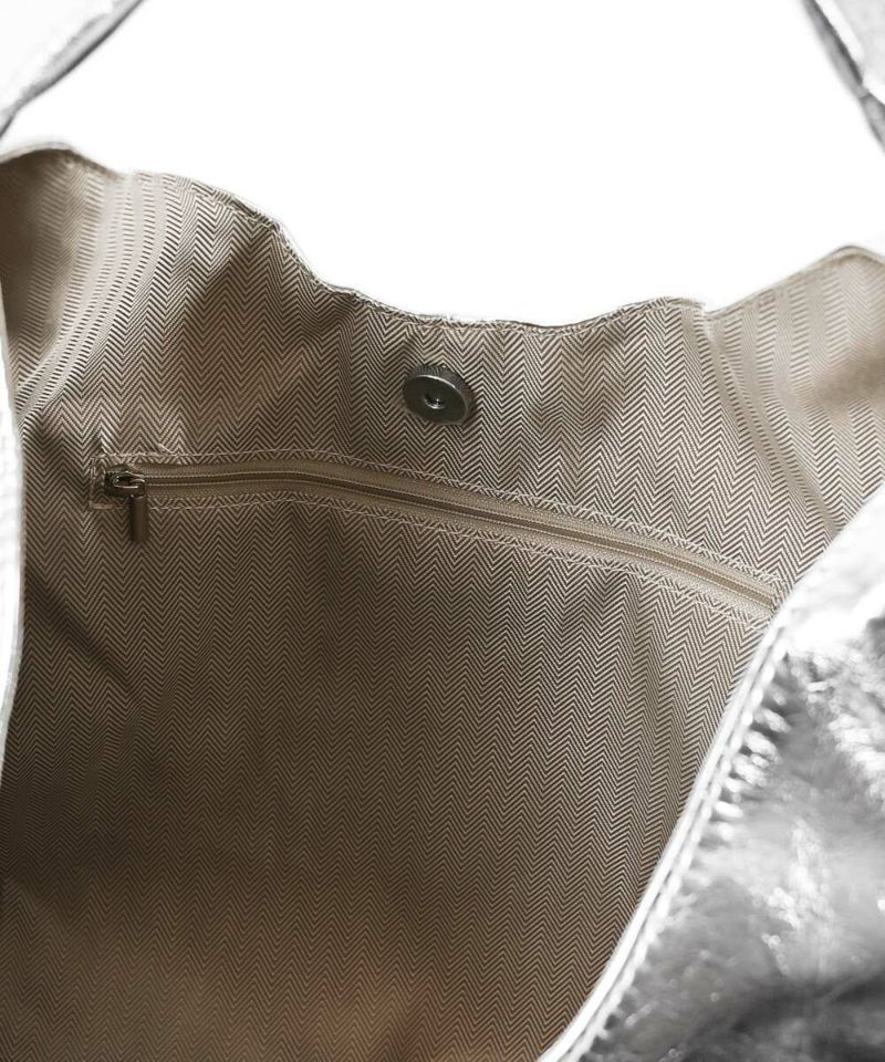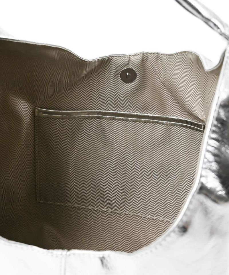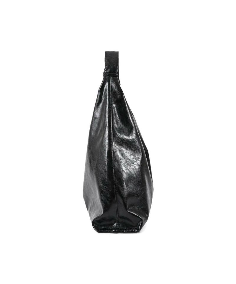 トライアングル型のトートショルダーバッグ。大きな入り口とマチもたっぷりな大容量サイズ。