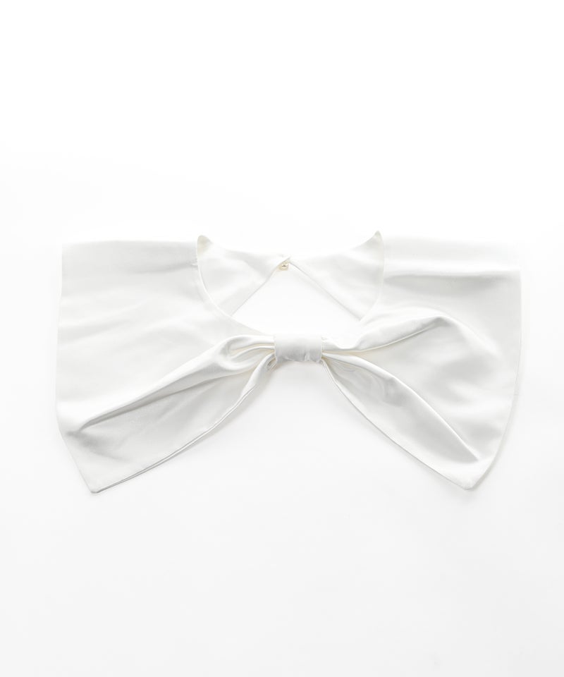 コーディネートの主役になる、大胆なリボンデザインの付け襟。 シンプルなスタイリングにプラスするだけで、一気に華やかで印象的なスタイルへとアップデートしてくれます。 顔まわりを引き立てる存在感で、着こなしにメリハリとアクセントをプラス。