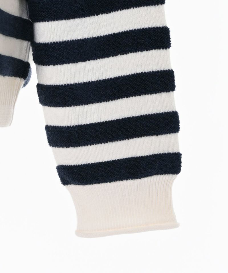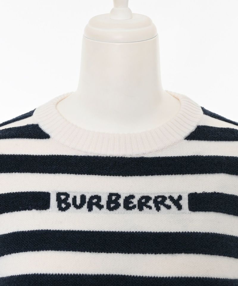 【ポイント】 ・パイル地と肉厚ニットのボーダー地・アームと裾にリブのデザイン・フロント上部にボックスロゴ有 【BURBERRY】 今なお受け継がれる英国の伝統を伝えるブランド。1856年に創立のアパレルブランド「バーバリー」。創業者トーマス・バーバリーは農民が汚れを防ぐために服の上に羽織っていた上着をヒントに耐久性・防水性に優れた新素材を発明した。