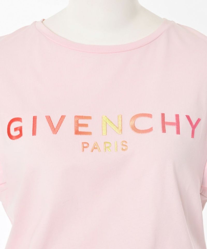 【ポイント】 ・レインボー刺繍ロゴ・ウエストゴム入り・袖フリルが二の腕をカバー 【GIVENCHY】 ジバンシィは、1952年にフランスにて設立。現在では服飾、装飾品だけでなくコスメラインも展開している。古くはオードリー・ヘップバーンなどが着用し、世界的な流行の最先端を担ってきました。様々な歴史を経てきたものの、古きよきデザインは健在。正統派フレンチファッションを代表する世界的ブランド。コンセプトは「エレガンス」であり、上品で洗練されたスタイルが特徴。