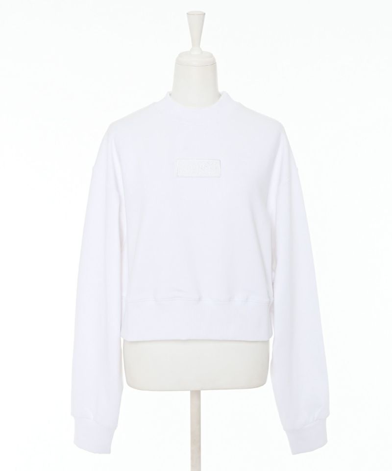 ・フロント部分にボックスロゴ・身幅が広めのデザイン・クルーネック