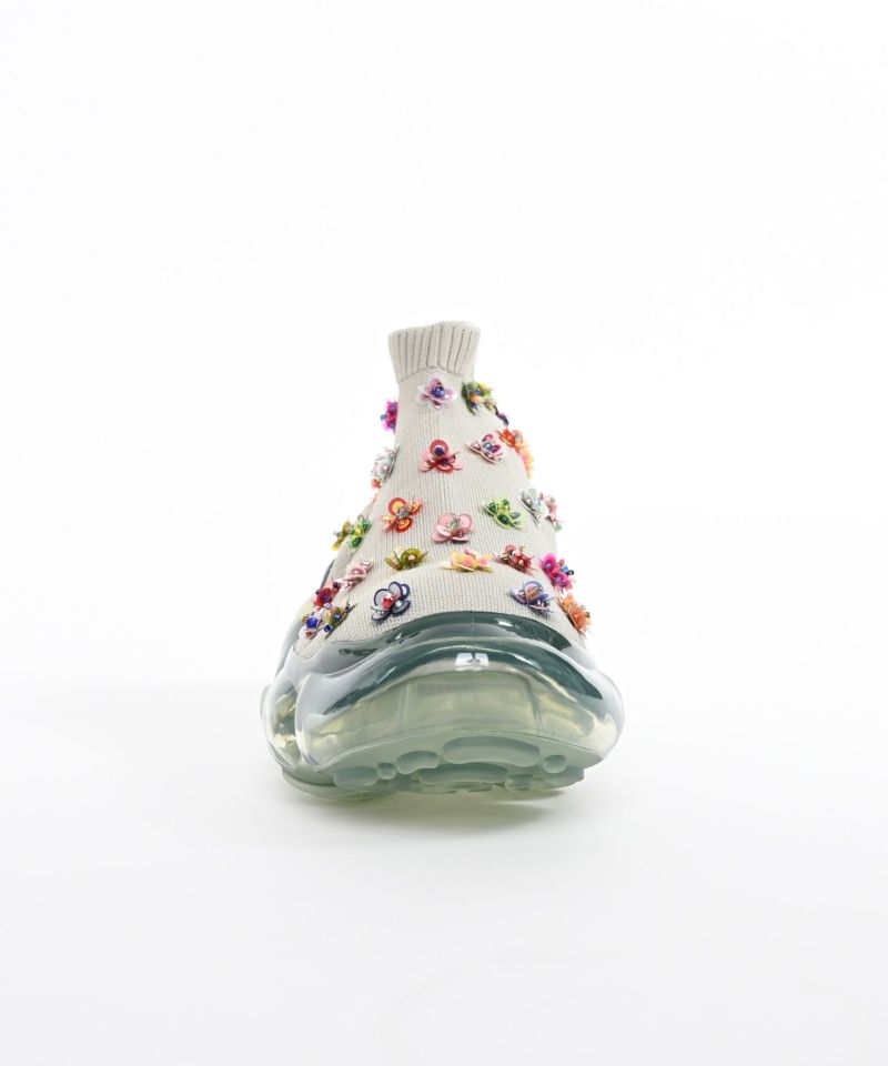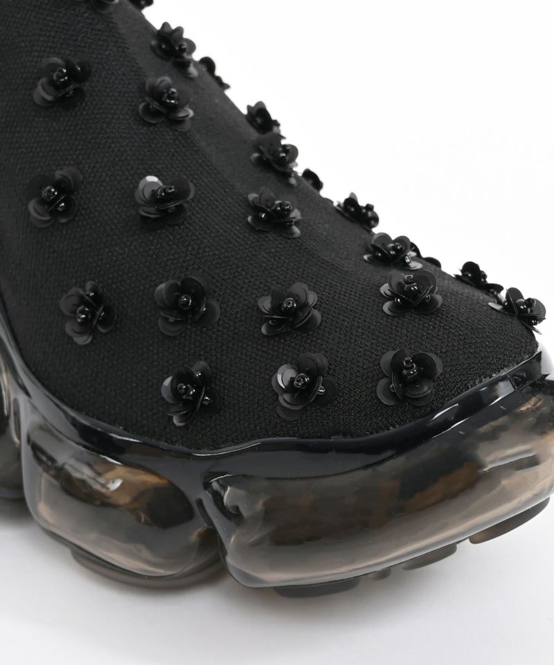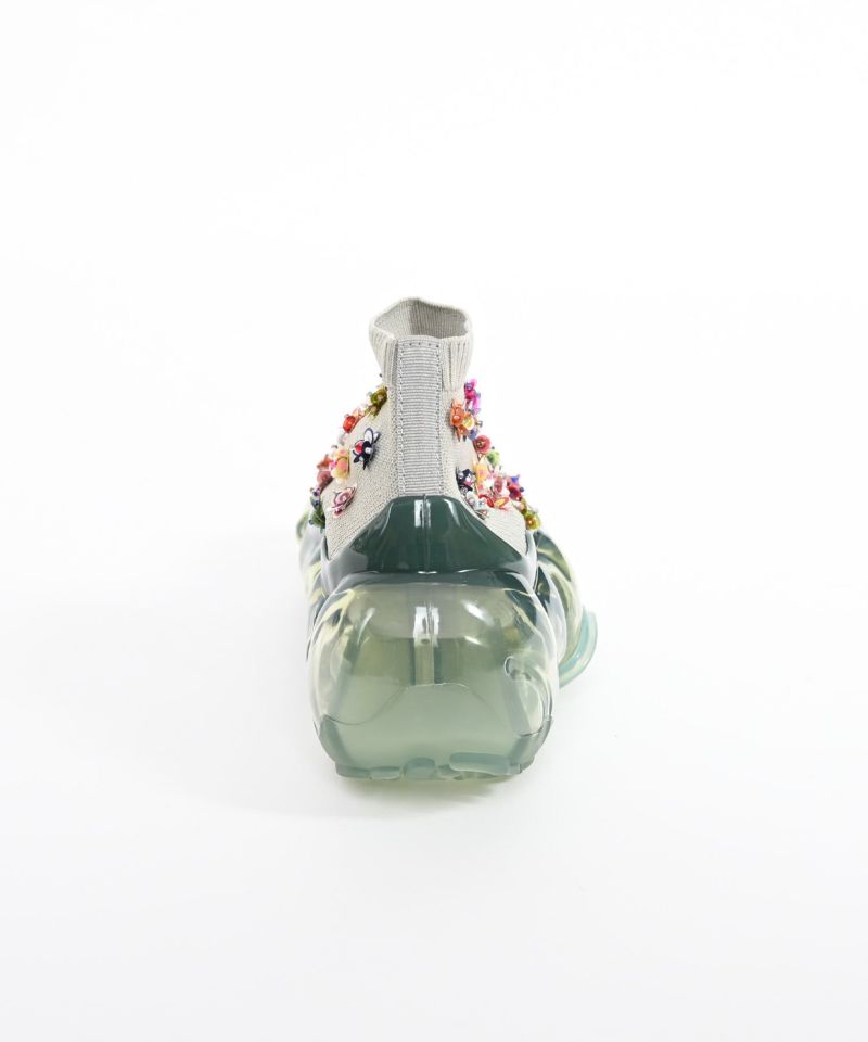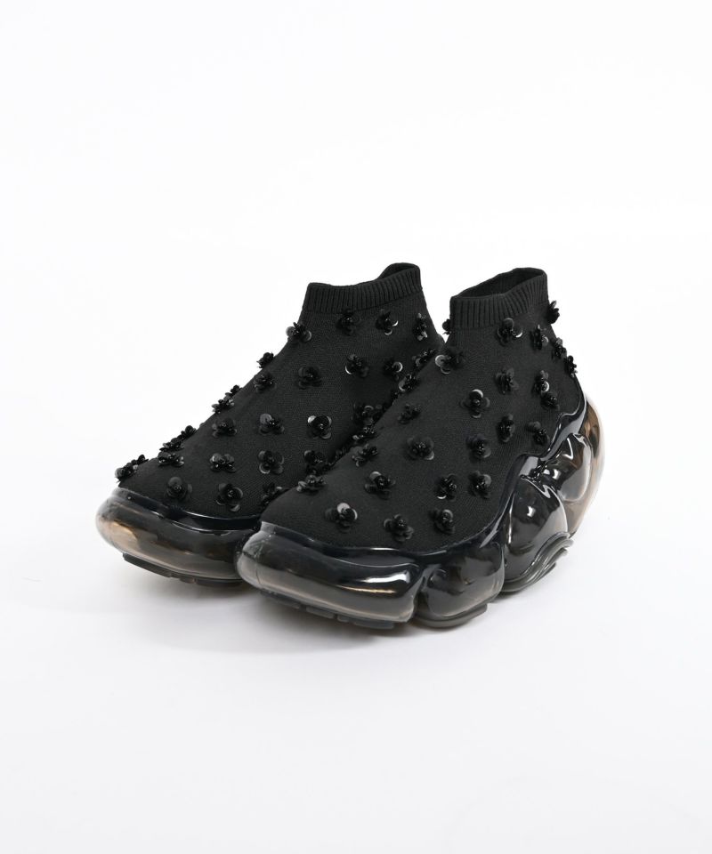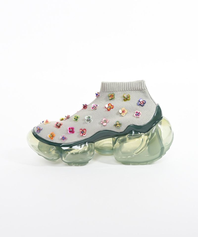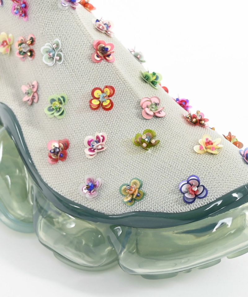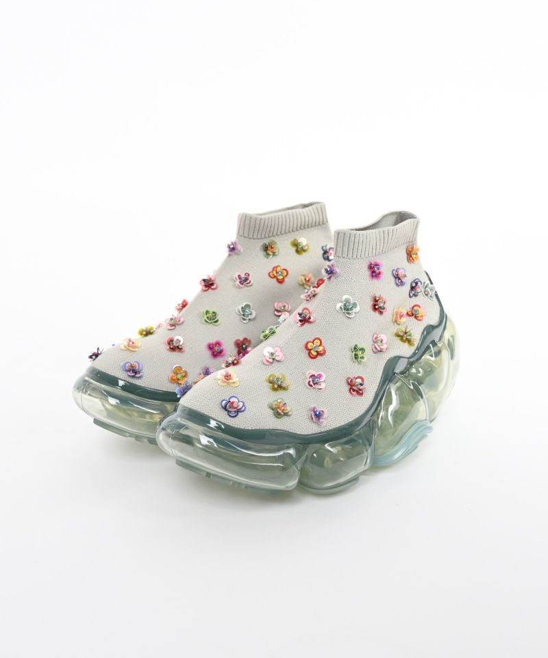 ベルギーのアントワープを拠点とする ファッションブランド " HEAVEN TANUDIREDJA " (ヘヴン タヌディレージャ)とのコラボレーションによるアイテム。 groundsで大人気のMOOPIEをベースに 今回のコラボレーションでは ビーズやスパンコールを使用し 立体的な花のモチーフがデザインされています。