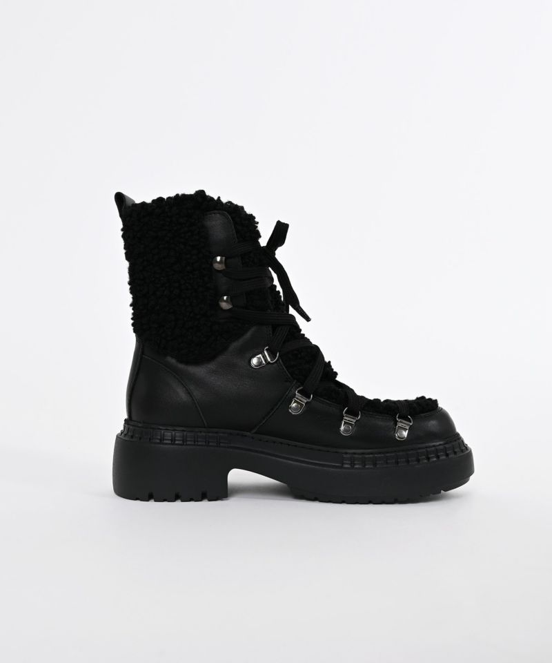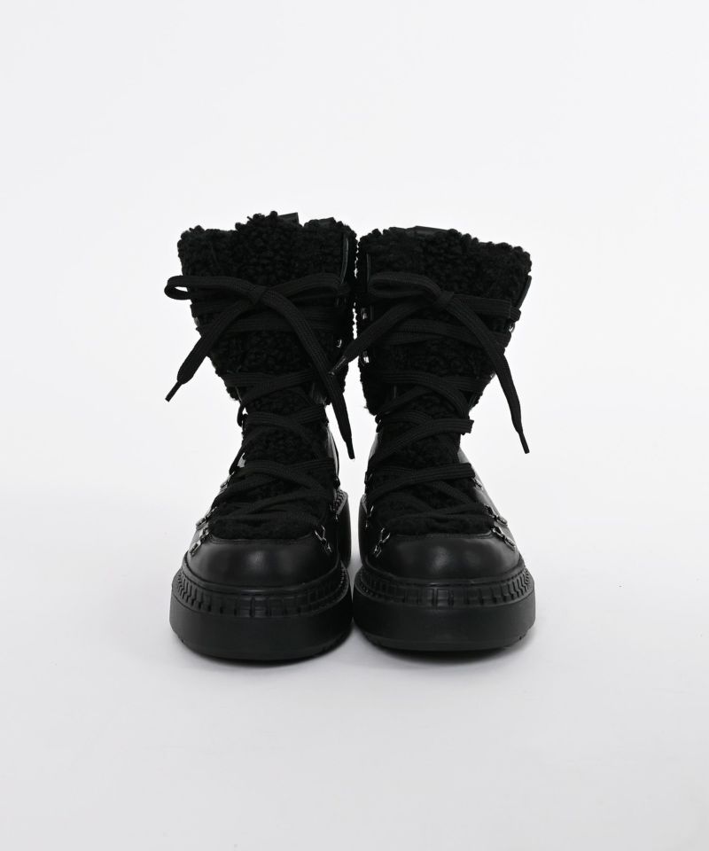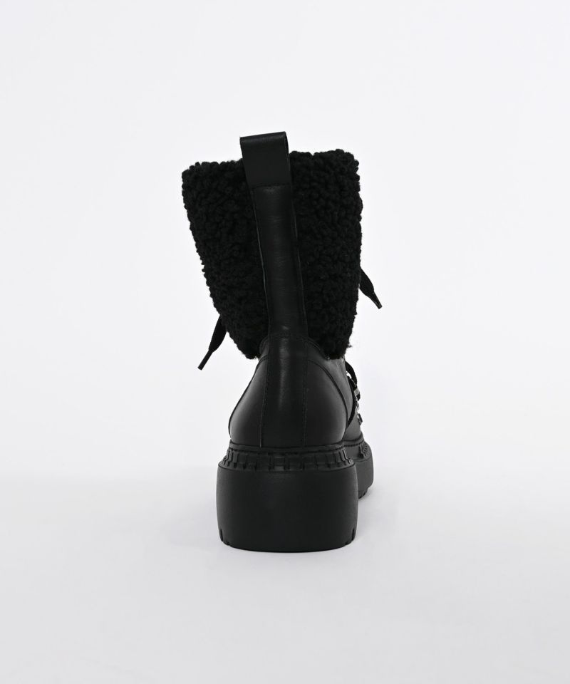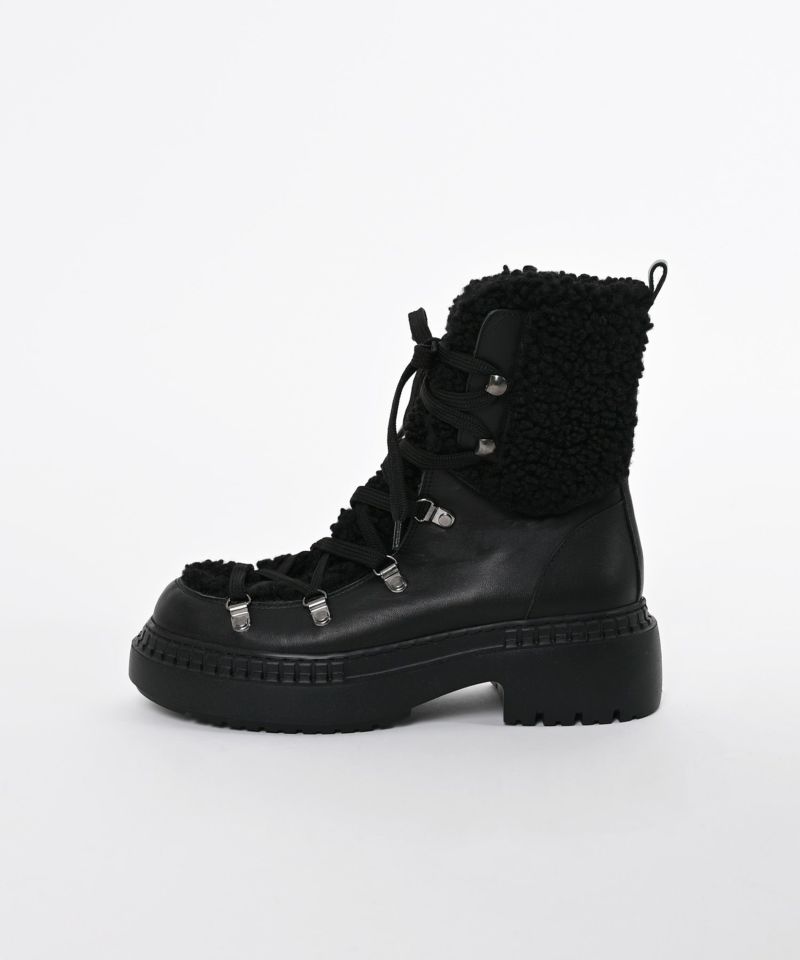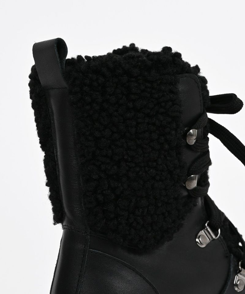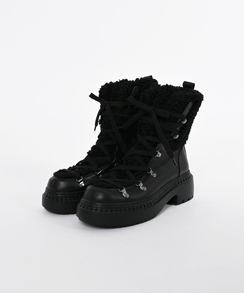 レザー×ボアがドッキングされた甘辛テイストなブーツ。存在感のあるデザインで、コーディネートにモードなアクセントをプラスします。