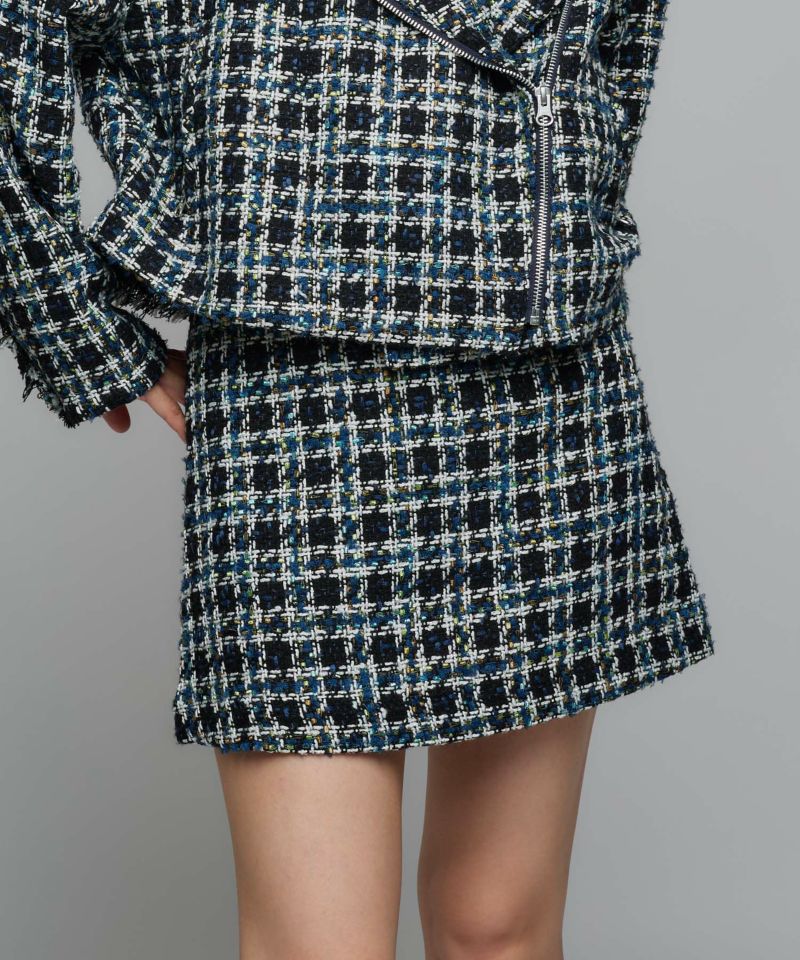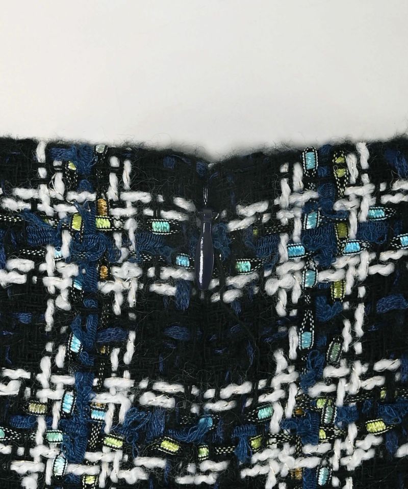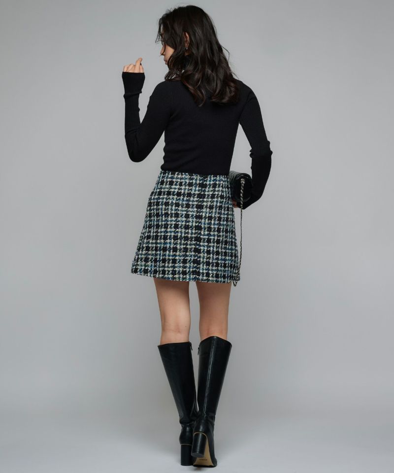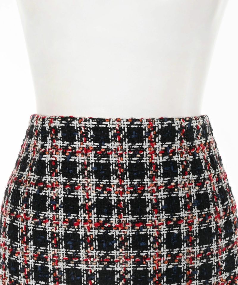 上品に着映えるツイード素材を使用したシーズンムード高まるミニスカート。織り交ぜたカラー使いが装いに華やかさをプラスします。インナーパンツ付きでミニ丈でも安心して着用可能。