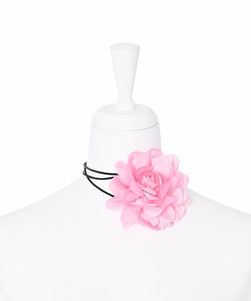 存在感のあるフラワーチョーカー。コーディネートのアクセントに。