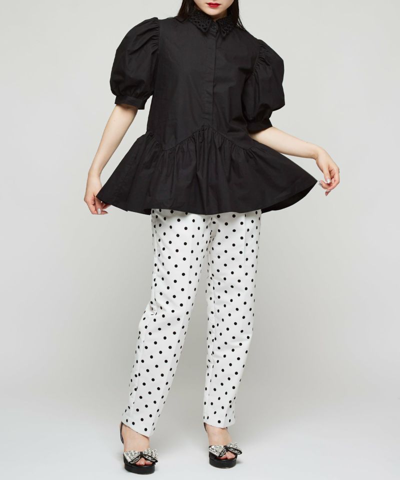 【PICCIN】心にフィットし、人を幸せにする洋服を。心まで作用するような洋服でありたいとPICCINは1990年に誕生以来、妥協せずこだわった洋服作りをしているブランド。女性らしさ溢れるドット柄のテーパードパンツ。フロントタックやウエストをゴム仕様にし、 程よくゆとりのあるシルエットにすることで、ストレスフリーに着用できる。Narcissusでは、可愛らしいドット柄にローファーやスニーカーで外したコーディネートもオススメ。【model】H165 B78 H83/156cm/H163 B78 H84