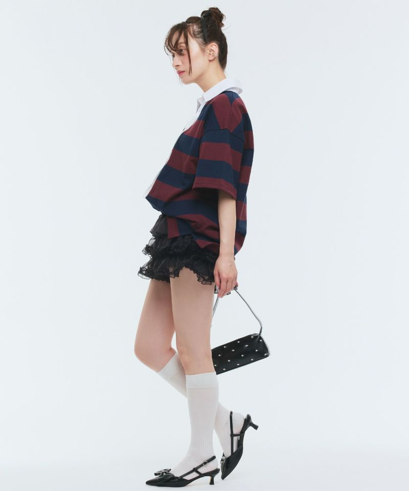 3層に重なった程良くボリュームのあるオーガンジーフリルが、フェミニンに着映えするミニスカート。裾にレースが施されたインナーパンツ付きで、細部まで可愛い&安心して着用可能。ウエスト総ゴム仕様。【model】H163 B78 H84/H160 B80 H85/H165 B78 H83