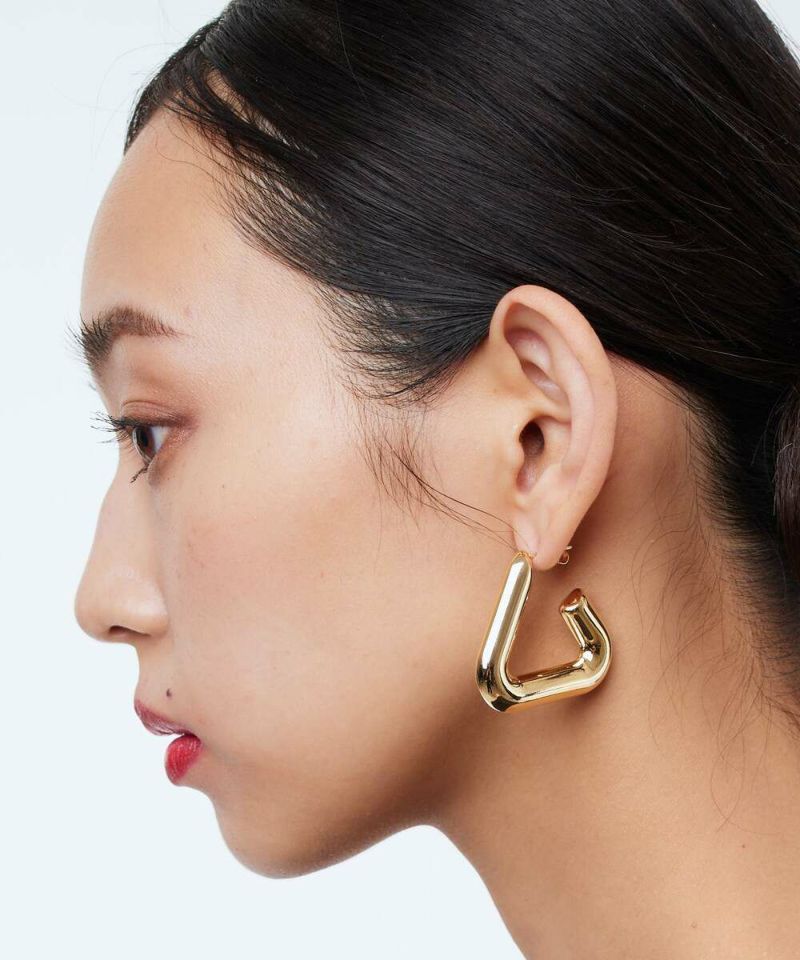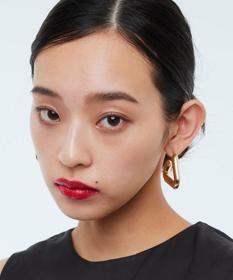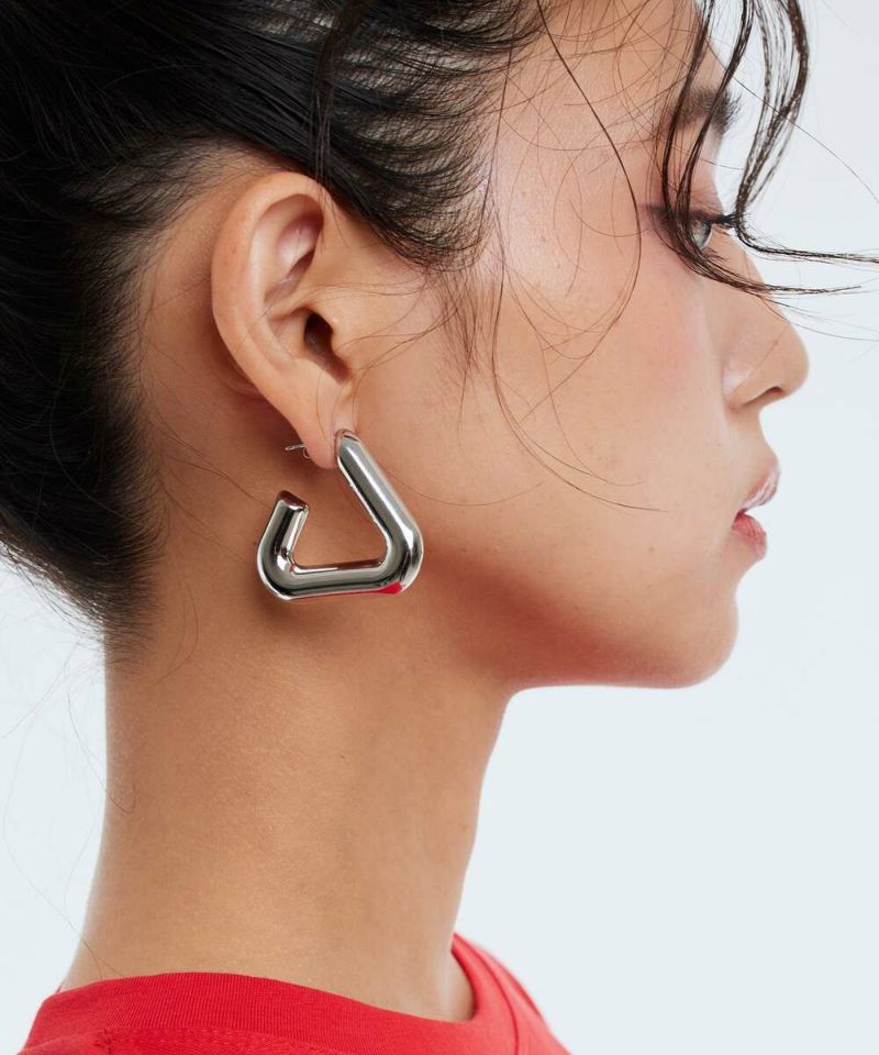 トライアングルデザインが立体感のあるモチーフで、スタイリッシュな印象のピアス。