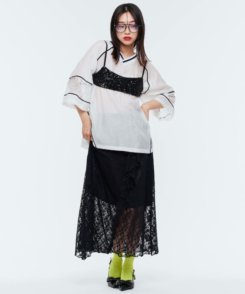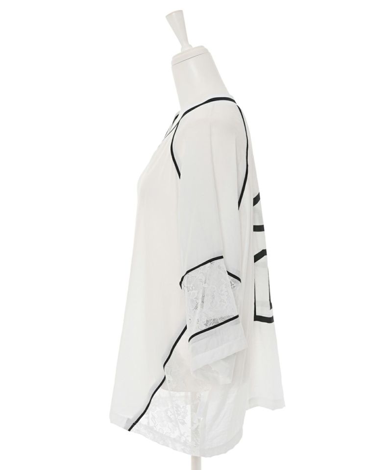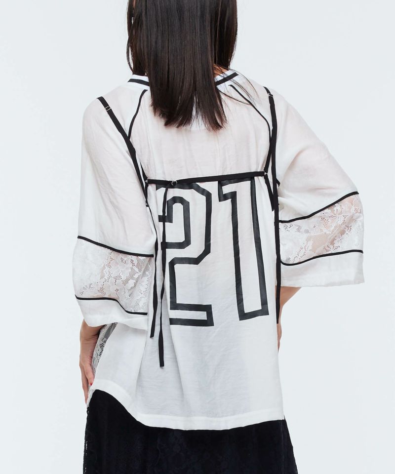 ユニフォームデザインが目を惹くスポーティーなTシャツ。レース素材を部分的に取り入れることで、女性らしさもプラスされたデザインに。これからの季節にピッタリな薄手で風通しの良い素材感。【model】H165 B78 H83 / H163 B78 H84