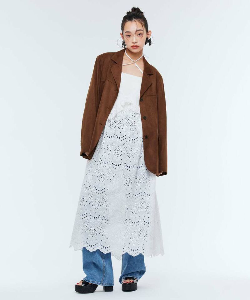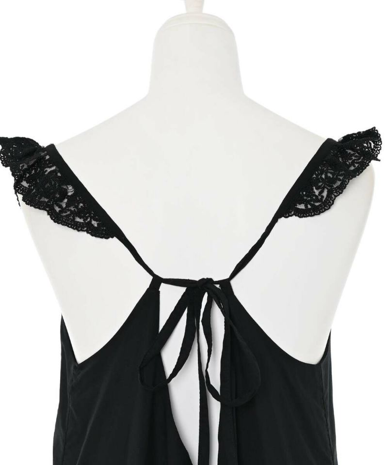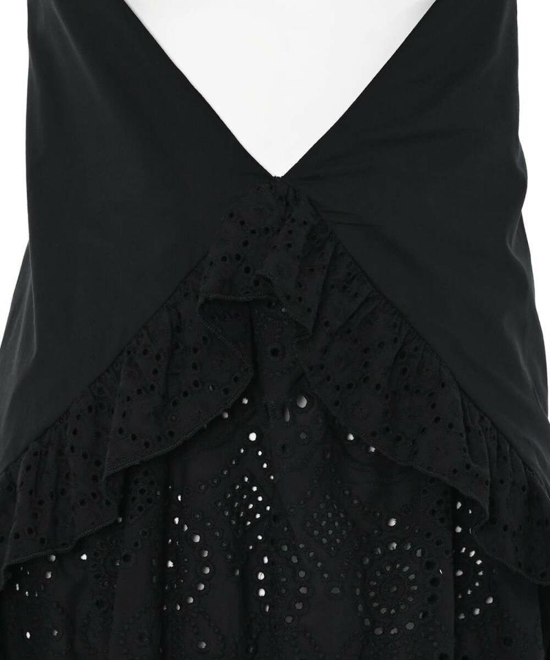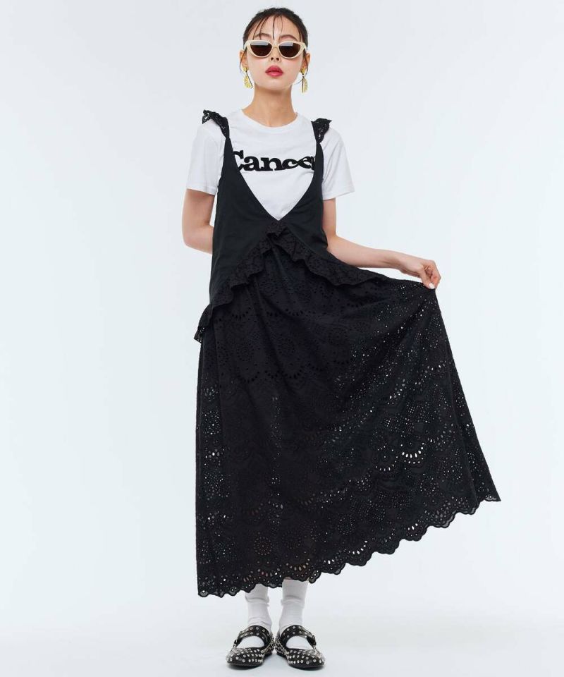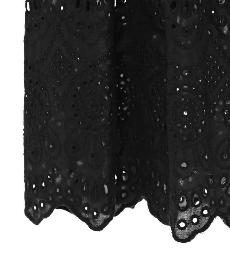 ナチュラルな風合いが魅力のコットンレース素材を使用したロングワンピース。裾には繊細な花柄刺繍とカットワークレースが施され、可憐で上品なアクセントに。バックリボンで着丈の調節可能。レイヤードスタイルにオススメの一枚。【モデル】:H163 B78 H84 / H165 B78 H83