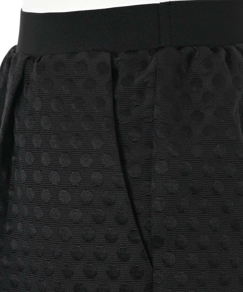 存在感のあるドットジャガード生地を使用したテーパードパンツ。ドット柄を同色でまとめていることで、コーディネートに馴染みやすくマニッシュな印象に。センタープレスが足長効果を期待。オケージョンスタイルにもピッタリなアイテム。 【model】H165 B78 H83