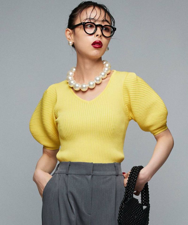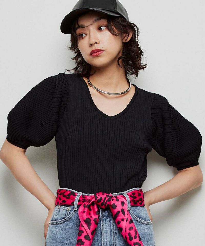 ボリュームのあるパフスリーブが印象的なニットトップス。Vネックデザインで華奢見えし、抜け感をプラス。カジュアルから綺麗めまで着回しできるシンプルなデザインで、一枚持っておくだけと重宝するアイテム。 【model】:H165 B78 H83 / H163 B78 H84/H160 B80 H85