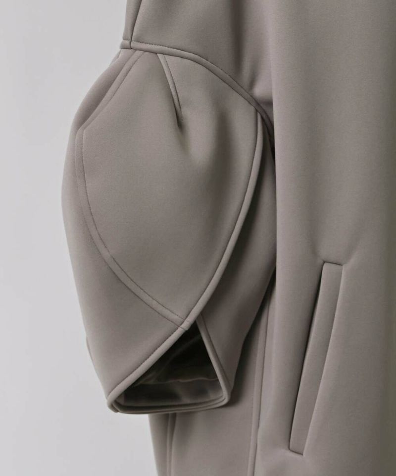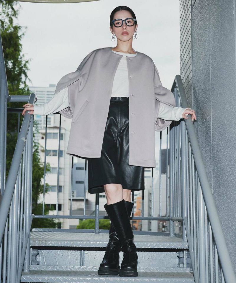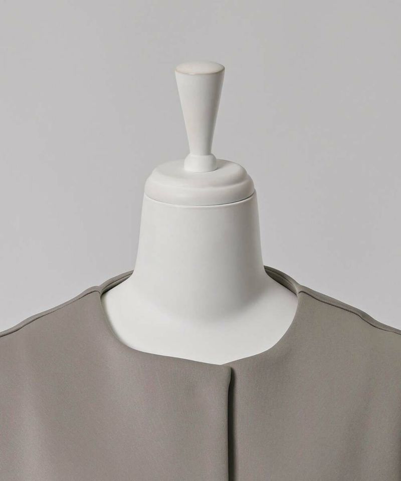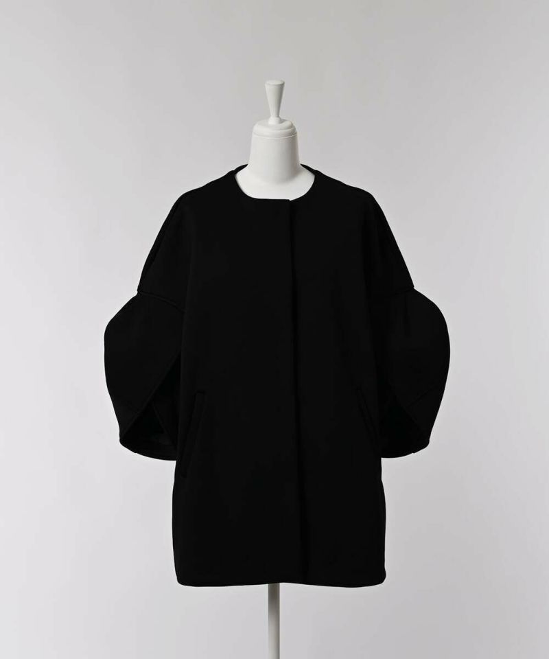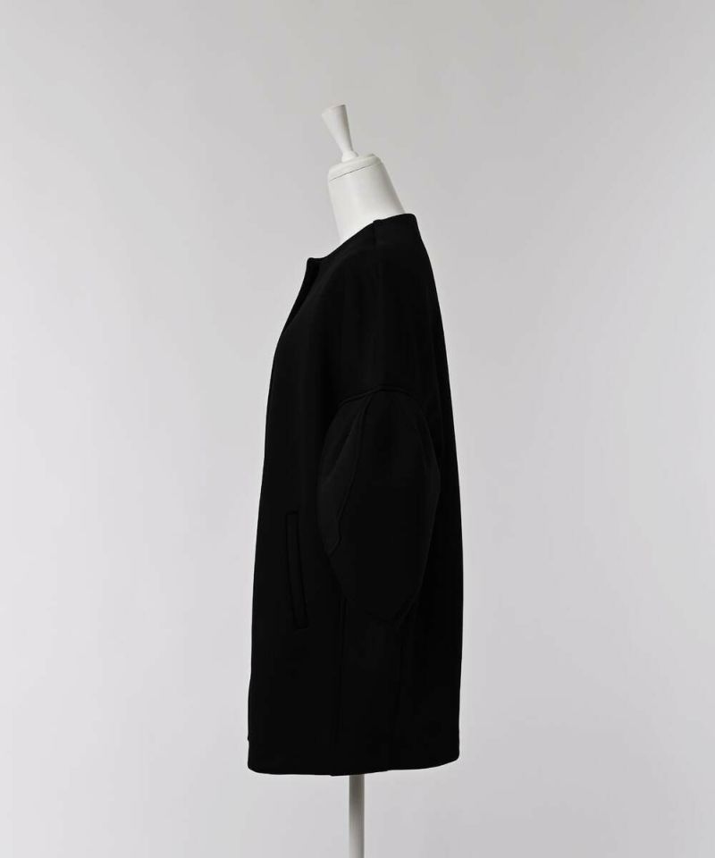 ノーカラーデザインとハリ感のあるボンディング素材が、綺麗めな印象のライトコート。ボリュームのあるお袖に、身頃はスッキリとしたデザインを採用することで、メリハリのあるシルエットに仕上げました。インナーを選ばずに羽織れる、ゆとりのあるサイジングもポイント。レイヤードスタイルを楽しめる七分袖を採用し、軽量で持ち運びしやすいので、気温差のある時期にも活躍するアウターとなっております。両サイドには、深めのポケット付きで機能性も抜群◎デイリー使いにはもちろん、フォーマルシーンにもピッタリで重宝するアイテムです。モデル身長:157cm/H160 B80 H85