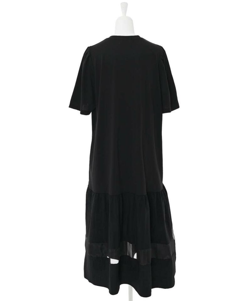 ■ POINTシンプルながらも目を惹く大人のリラックスワンピース。ヒップ下でギャザーを添えた切替えラインのマーメイドシルエット。さらにシアー素材をMIXした洗練されたデザインが魅力。シアー部分から覗く足元がぬけ感をプラス。計算されたシルエットがスタイルアップを叶えてくれるポイント。袖はさりげないパフデザインと五分丈で気になる二の腕をカバー。立体感と程よい女性らしさが魅力的な1枚。ロング丈でもふわっと広がるシルエットで涼しく着用いただけます。ノンストレスな着心地で夏のワードローブにかかせないアイテムに。■ STYLING 1枚でさらっと着るのはもちろん、デニムやボトムとレイヤードしたメリハリのあるコーデもおすすめ。ボディーラインを拾わないゆとりあるシルエットとサイドポケット付きでタウンユース、リゾートにもおすすめ。モード、カジュアル、フェミニンなど合わせるシューズや小物も選ばない着回し力の高さが魅力。【model】H163 B78 H84