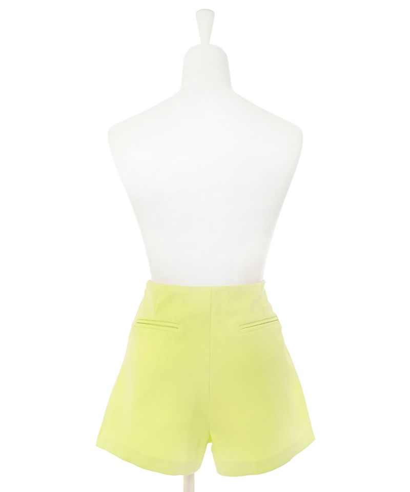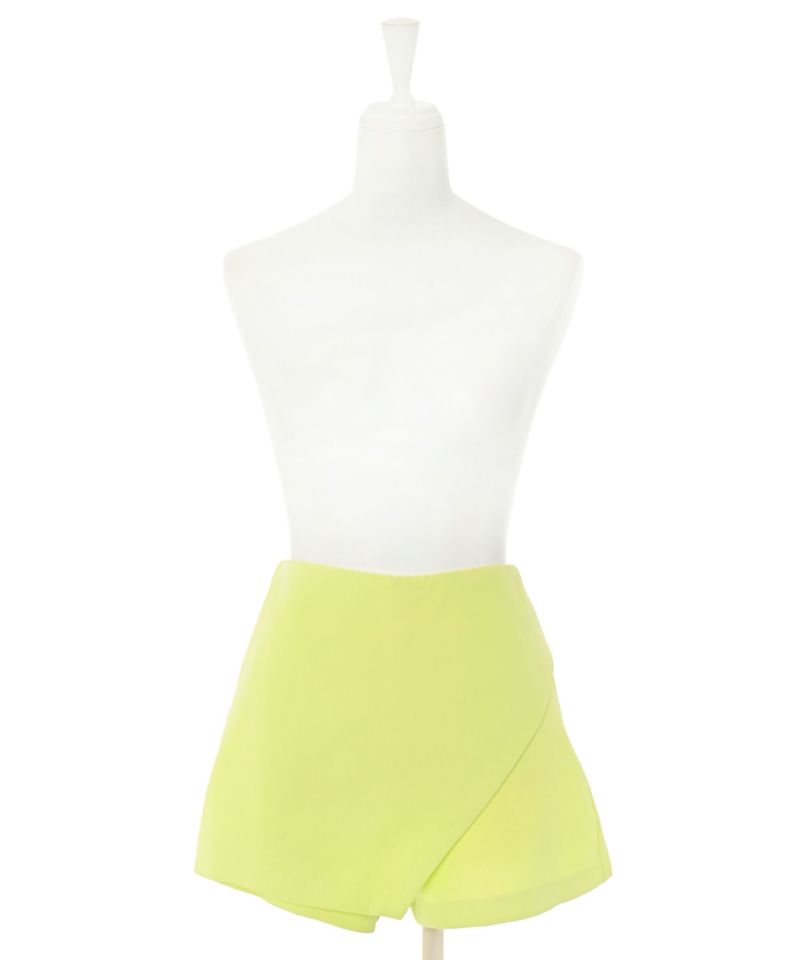 フロントがアシメデザインになったショートパンツ。ラップスカートに見えるデザインと程よくAラインのシルエットが脚長効果抜群。シンプルなトップス合わせでも一癖あるコーディネートに。