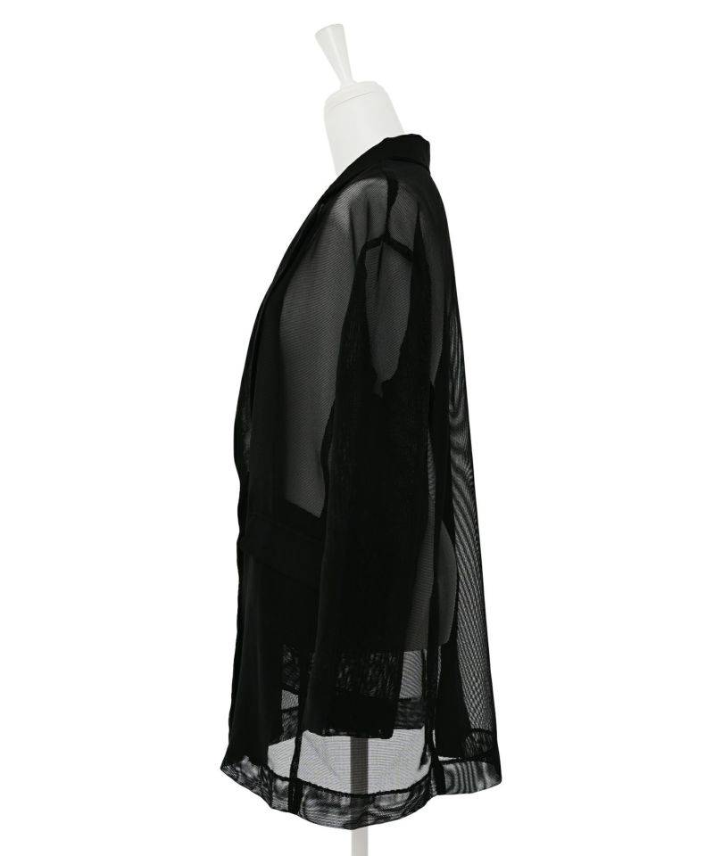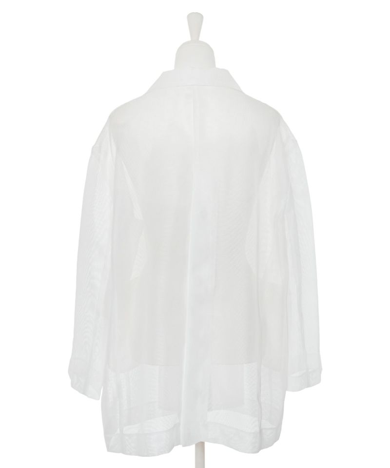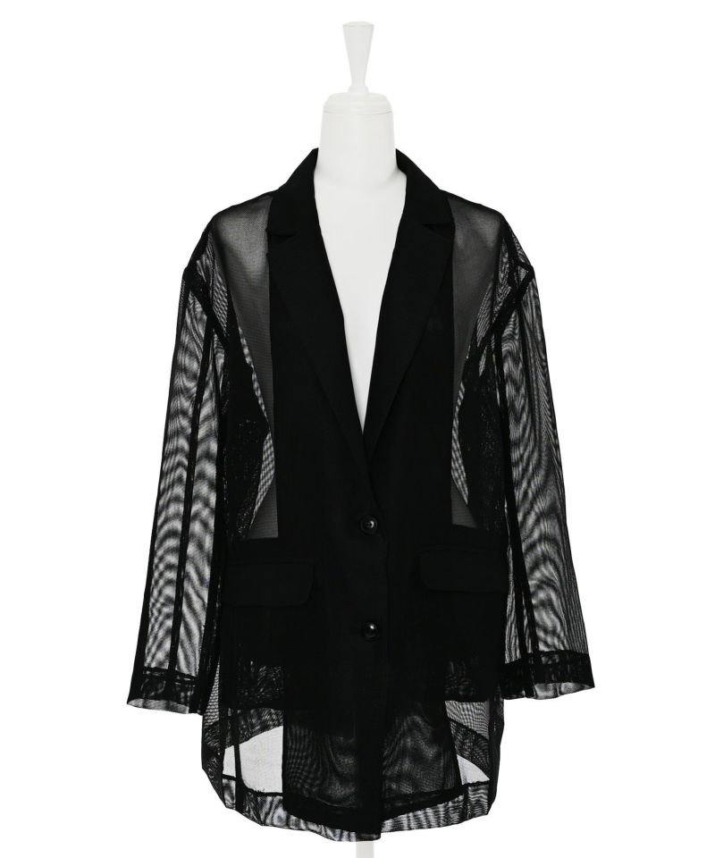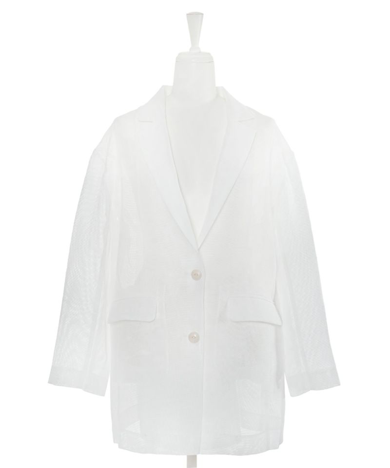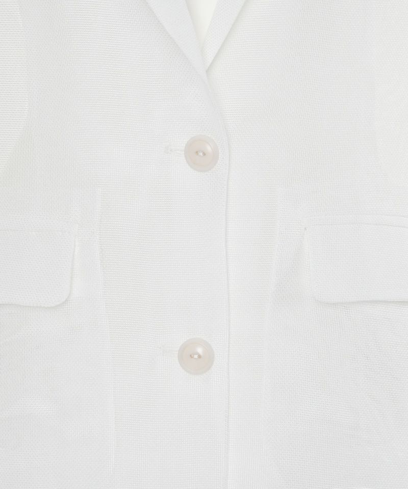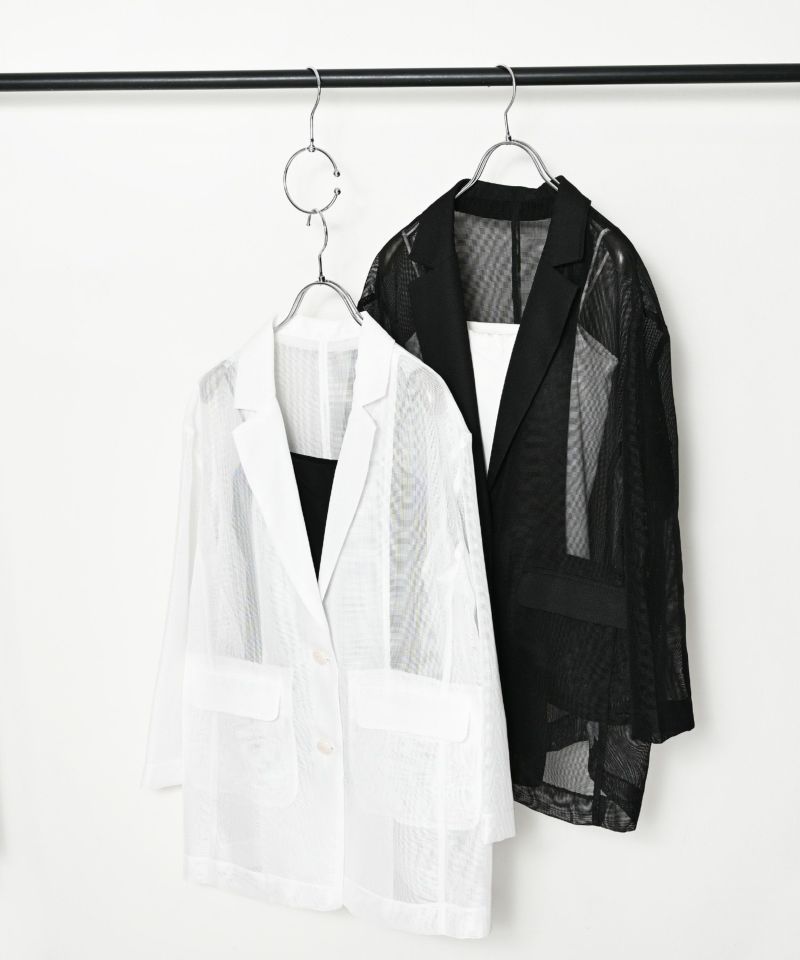 都会的で洗練された印象を与えるメッシュ素材を使用したテーラードジャケット。さらっと羽織るだけで、普段のスタイリングをワンランクアップさせてくれるアイテム。バックには、開閉可能なスリットデザインにもなるボタン付き。フロントのポケットは実用性◎