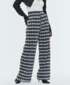 サラッとした落ち感のあるプリーツ素材が、ストレスフリーに着用できるリラックスパンツ。モノトーンの千鳥柄がクラシカルな印象を与えつつ、ウエストは総ゴムなのが嬉しいポイント。肉感を拾いにくい素材なのでショート丈のトップスやタックインスタイルでも◎