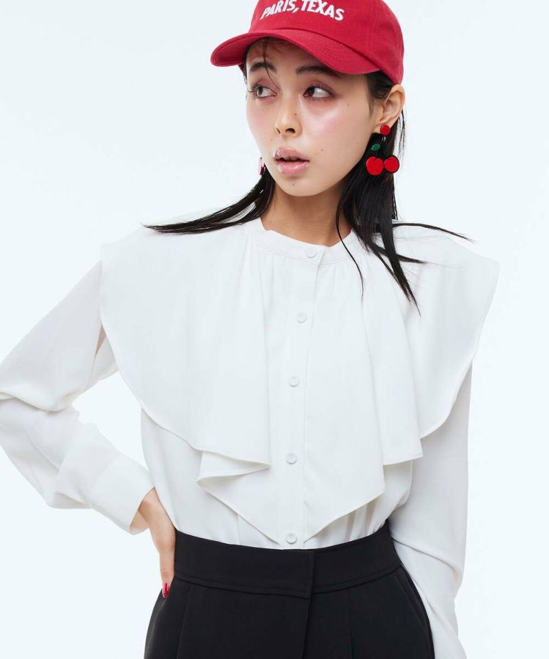 コーデに女性らしさをプラスしてくれる大きなラッフルカラーが特徴的なブラウス。シンプルなコーデに投入したり、ジャケットにレイヤードすれば、華やかに仕上がり着映えする1枚。サラッとした質感ながら、とろみのある柔らかい風合いは、着こなしに品を添えるシーズンファブリック。