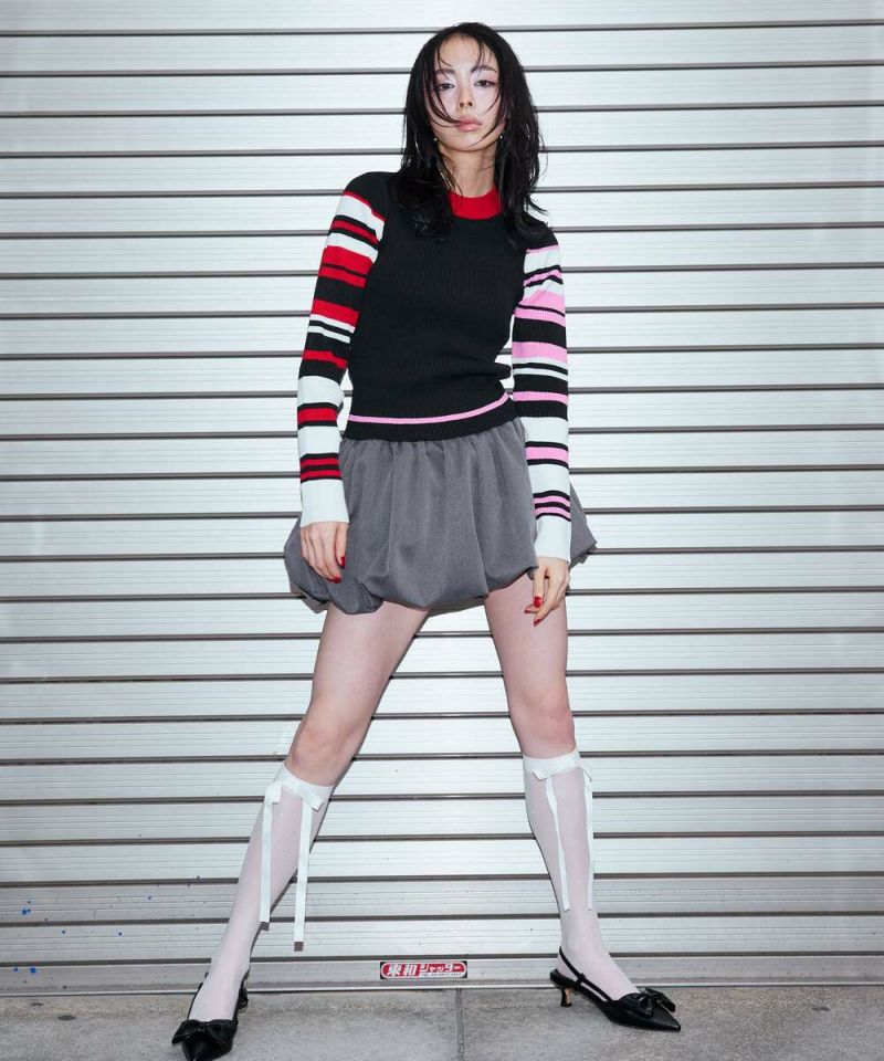 着心地抜群の定番アイテム「リブニットシリーズ」から、今季は発色の良いカラーを2色使用したボーダーデザインを企画。一枚で存在感抜群なので、ボトムスはシンプルなアイテムとスタイリングして頂くのがオススメです。スタイリング次第で、カジュアルにもモードにもハマるアイテム。