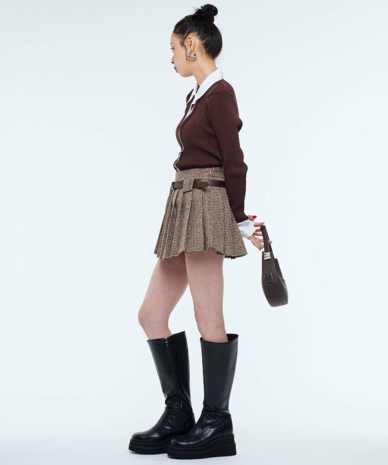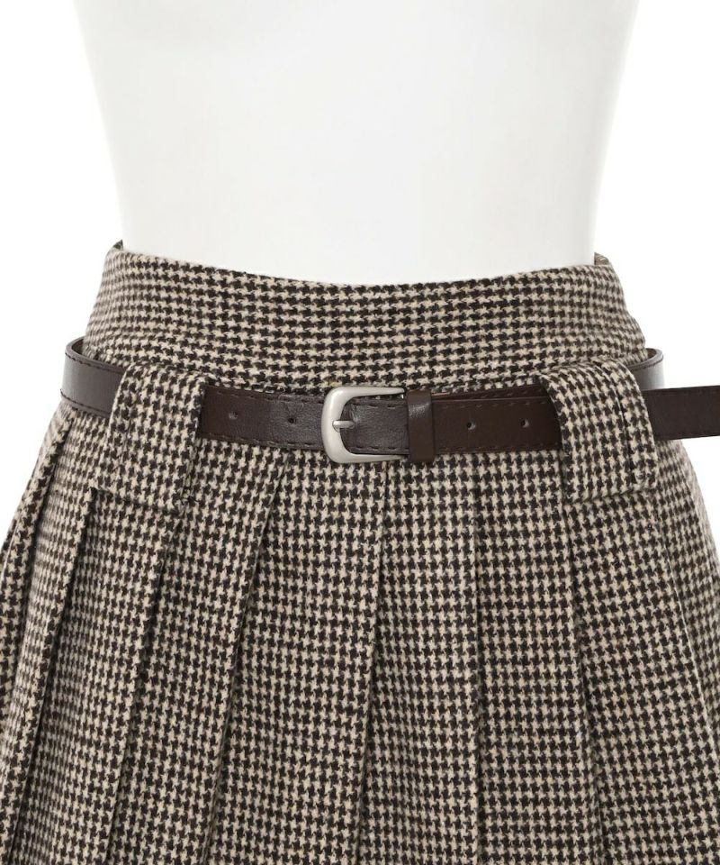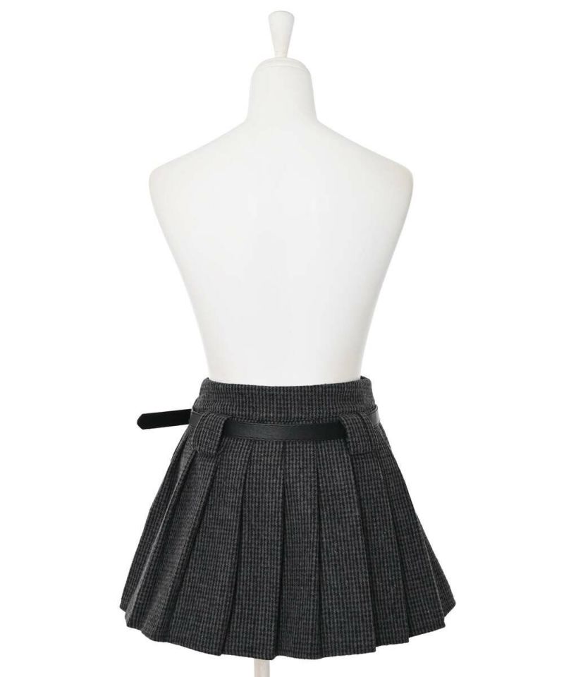 シーズンムード高まる千鳥チェック柄のプリーツスカート。取り外し可能なベルト付きが嬉しいポイント。ミニ丈ながらも、インナーパンツ付きなので安心して着用可能。ハイウエスト仕様で足長効果抜群◎【モデル】:H163 B78 H84 / H165 B78 H83