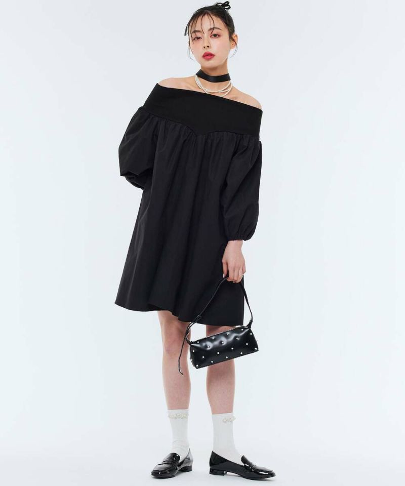 デコルテを映えさせるオフショルデザインとパフスリーブが女性らしいワンピース。オフショル部分は伸縮性のあるリブ素材で、身頃と袖部分は風通しの良いコットン素材を使用。ボディラインを拾わないAラインシルエットが嬉しいポイント。【model】H165 B78 H83
